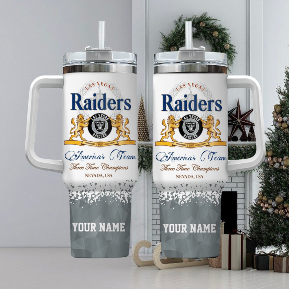 Las Vegas Raiders Nfl Custom Stanley Quencher 40Oz Stainless Steel Tumbler With Handle