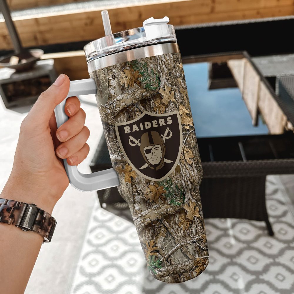 Las Vegas Raiders Nfl Hunting Realtree Custom Stanley Quencher 40Oz Stainless Steel Tumbler With Handle