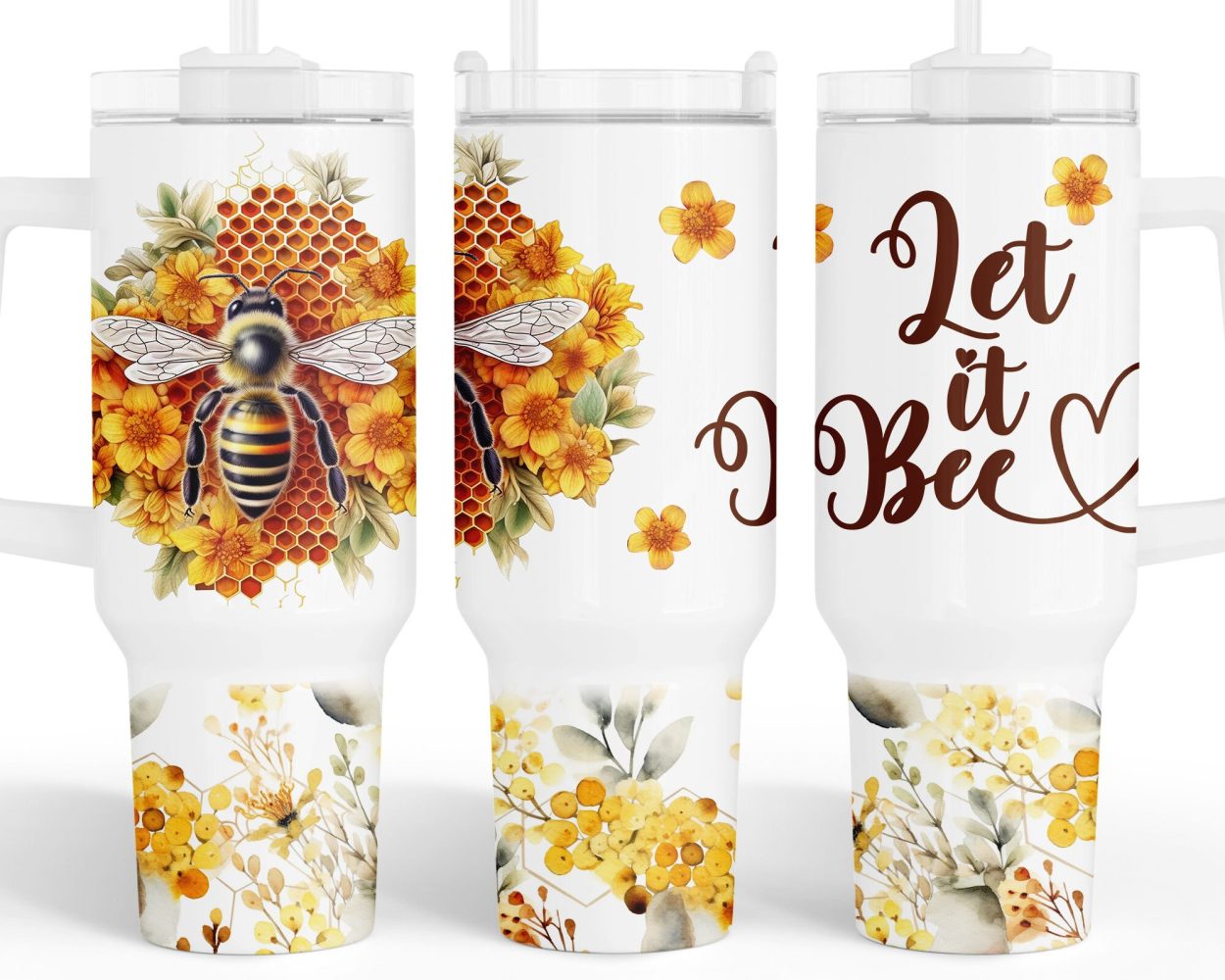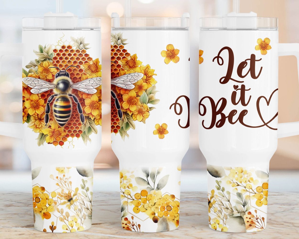 Let It Bee Floral Beehive Custom Stanley Quencher 40Oz Stainless Steel Tumbler With Handle
