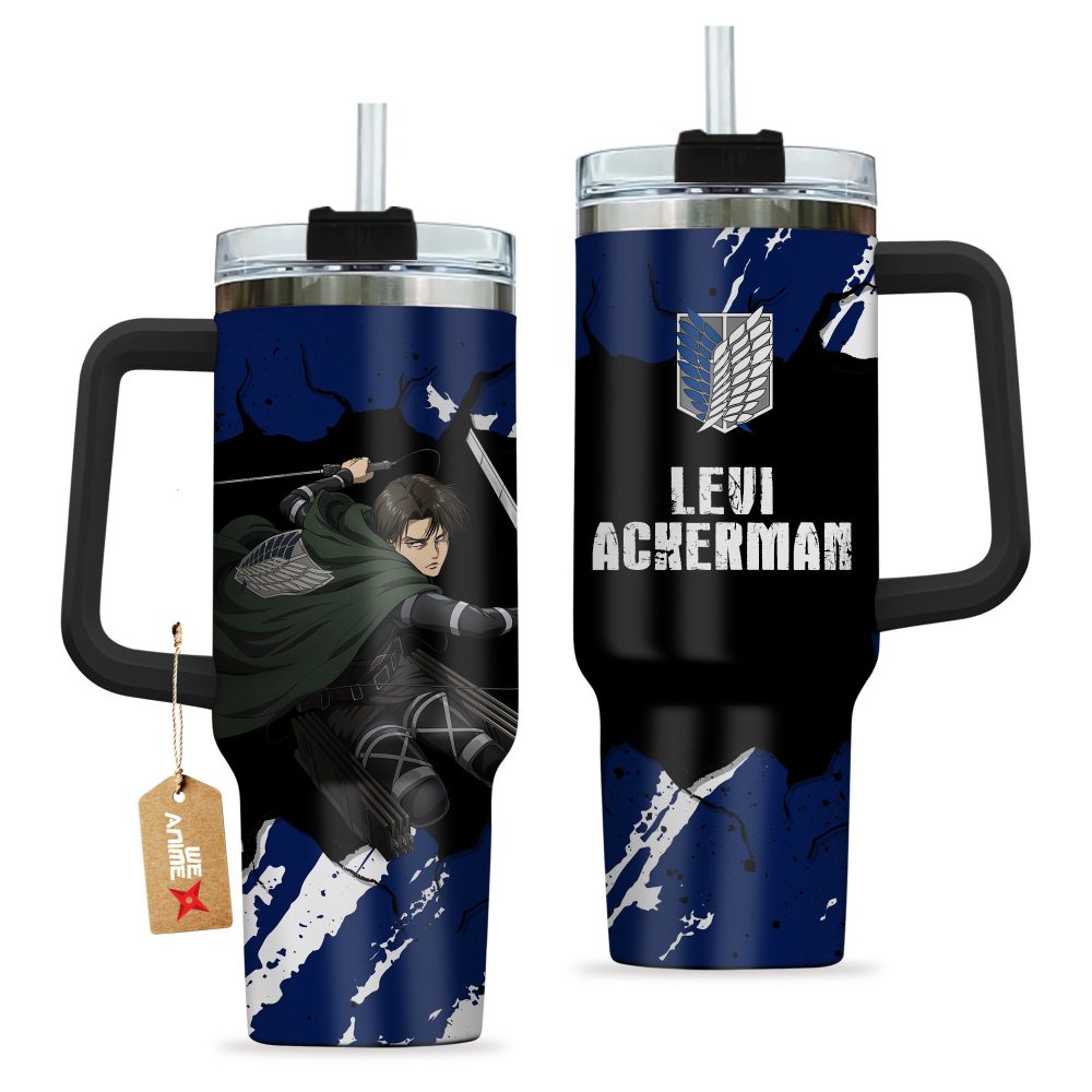 Levi Ackerman Attack On Titan Anime Custom Stanley Quencher 40Oz Stainless Steel Tumbler With Handle