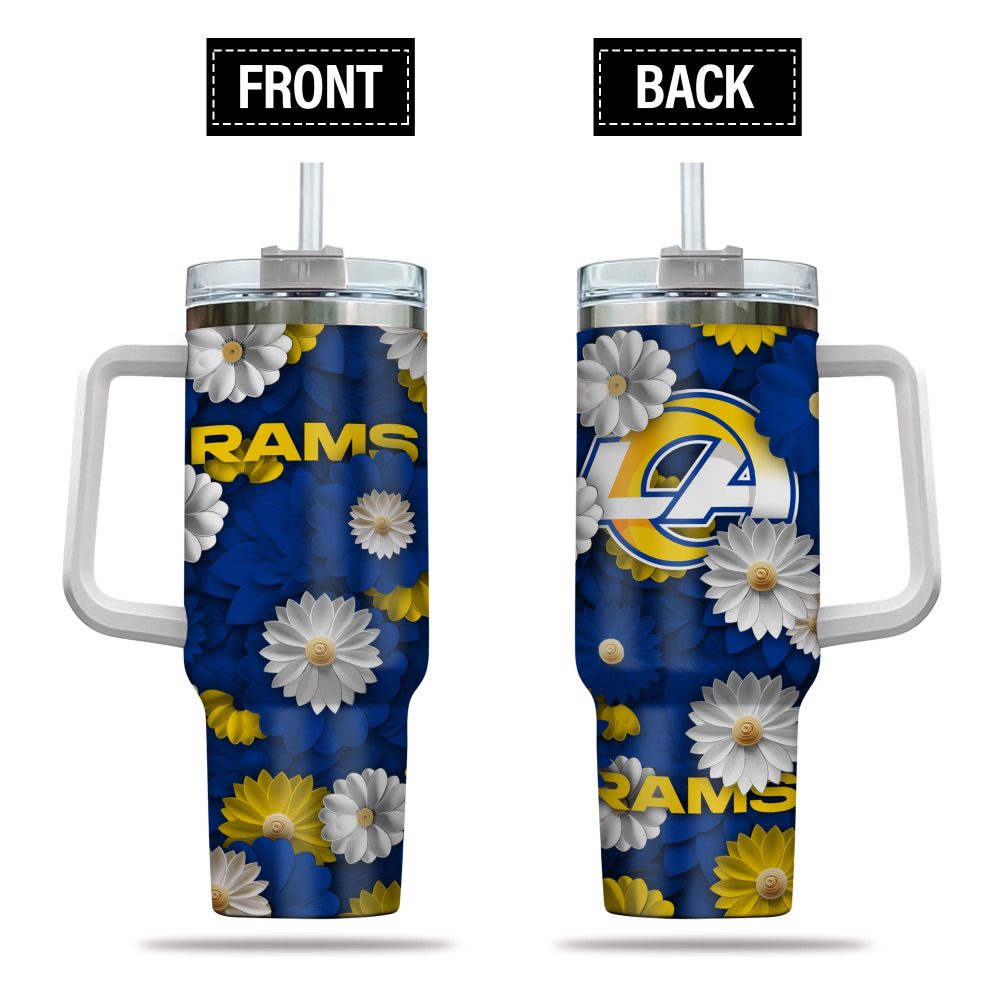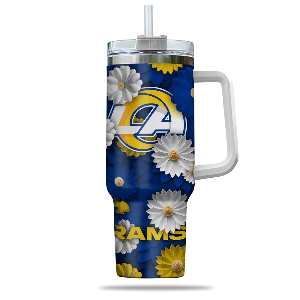 Los Angeles Rams Nfl Flowers Custom Stanley Quencher 40Oz Stainless Steel Tumbler With Handle