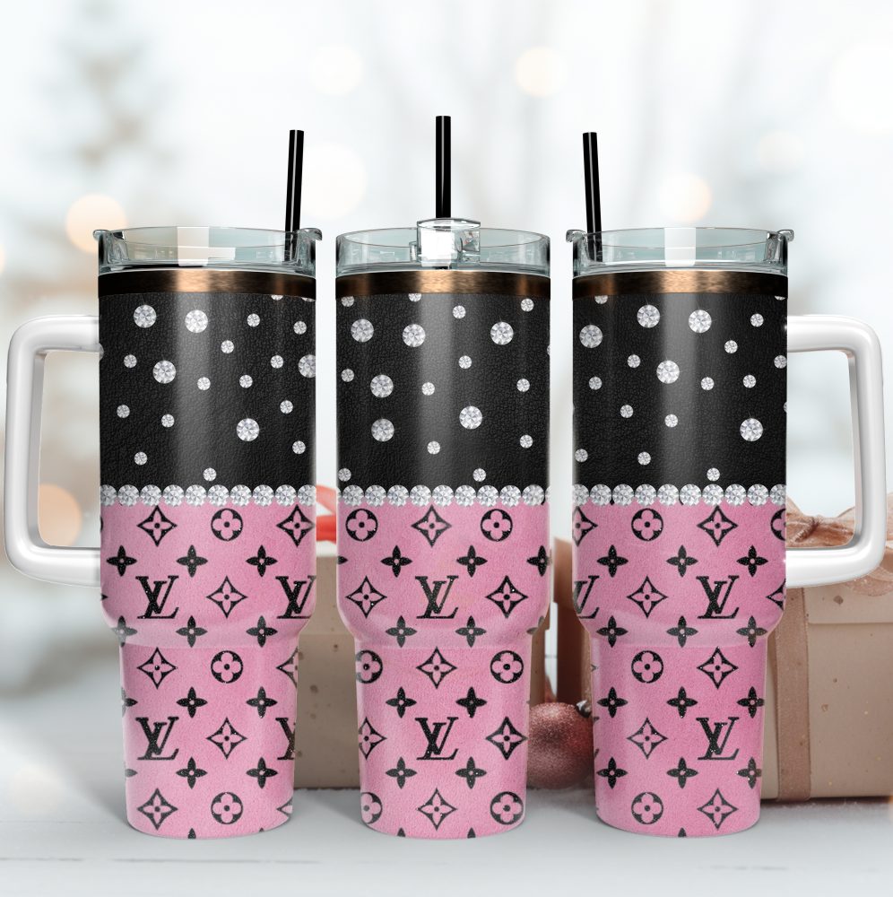Louis Vuitton Black Pink Lv Logo Custom Stanley Quencher 40Oz Stainless Steel Tumbler With Handle