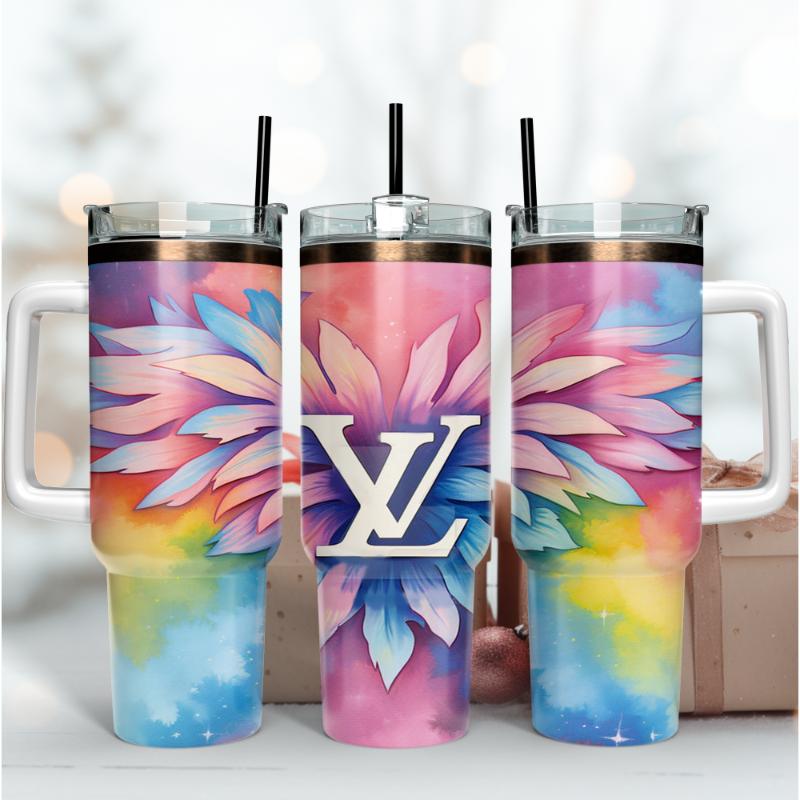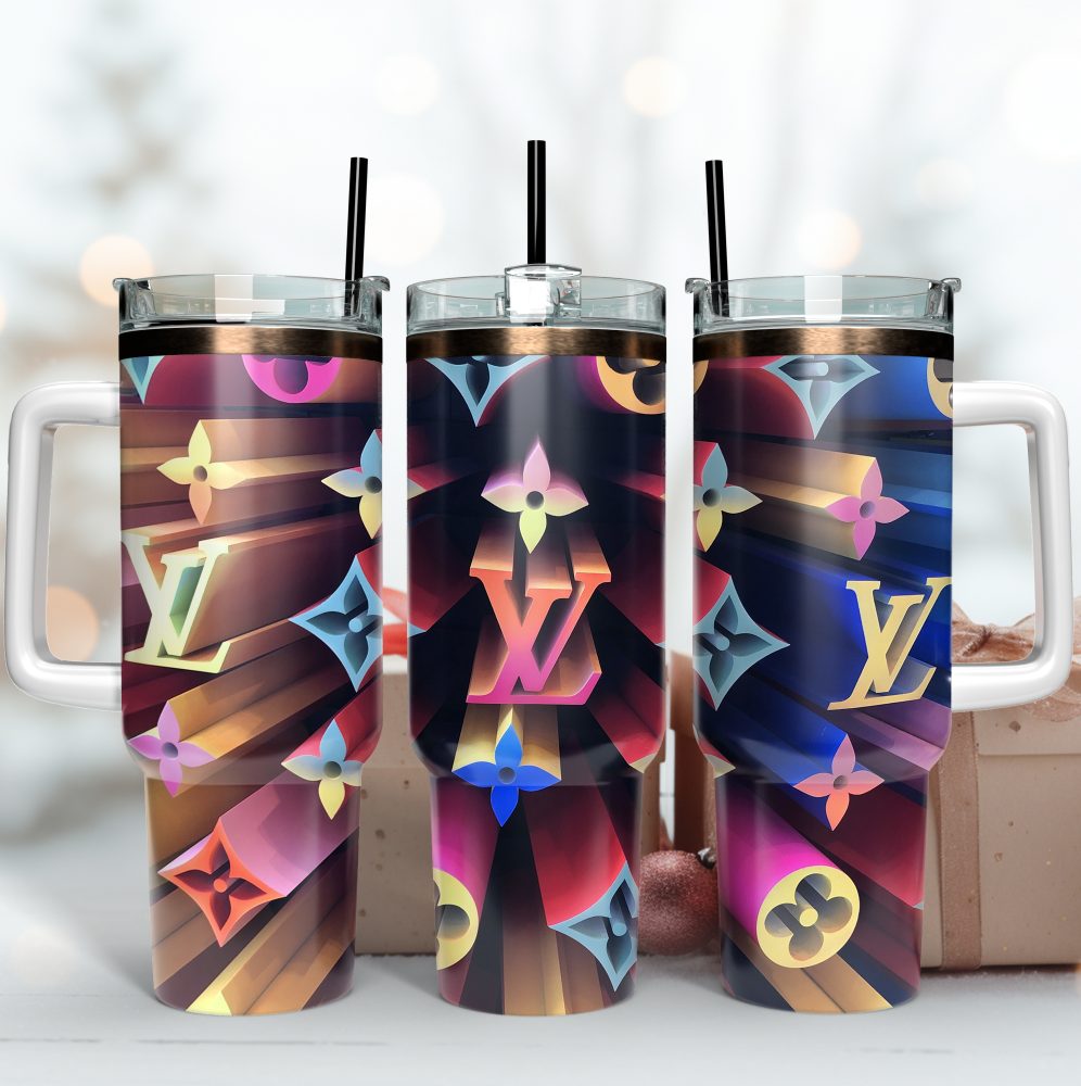 Louis Vuitton 3D Lv Logo Custom Stanley Quencher 40Oz Stainless Steel Tumbler With Handle