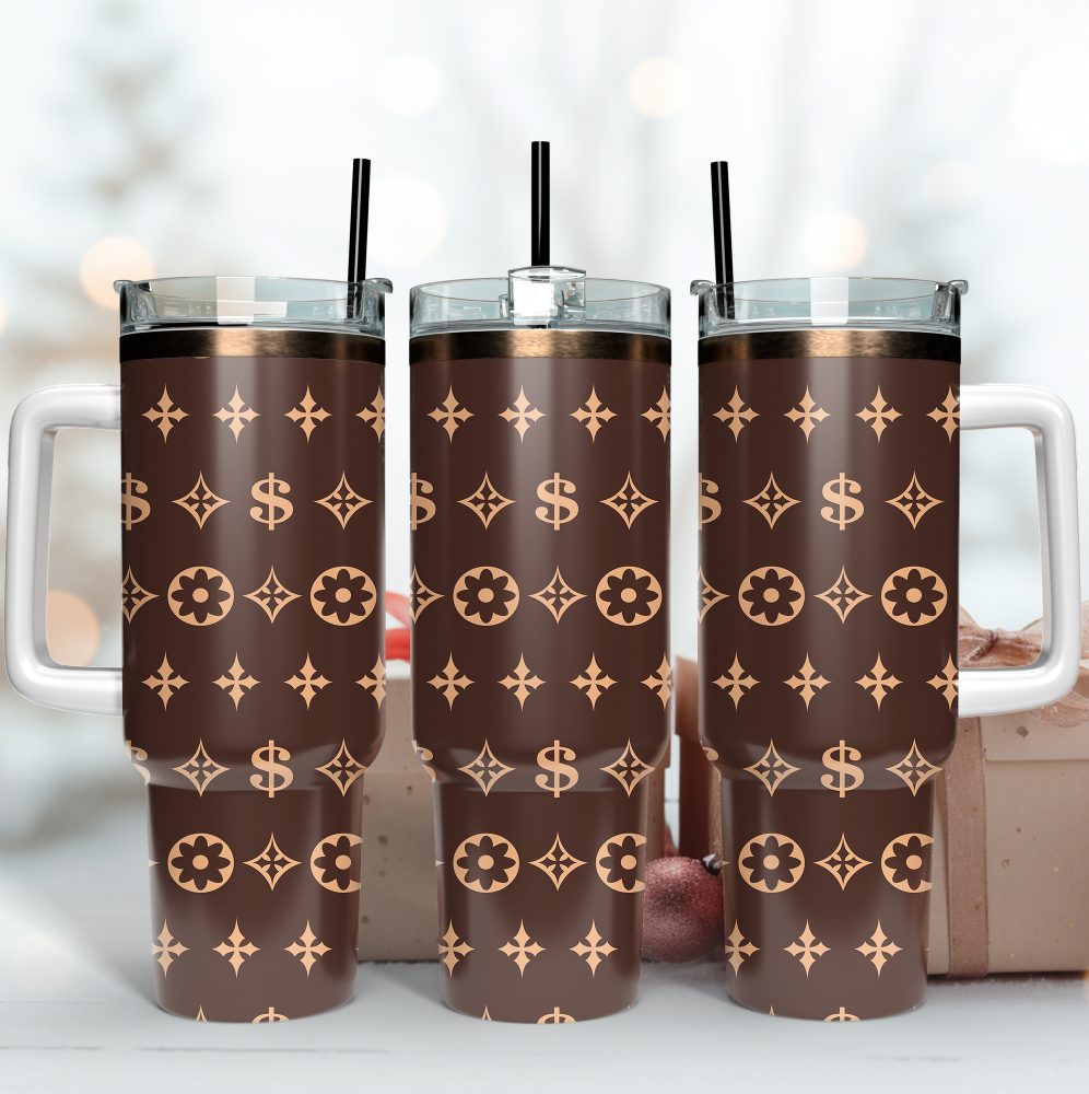 Louis Vuitton Brown Lv Logo Custom Stanley Quencher 40Oz Stainless Steel Tumbler With Handle