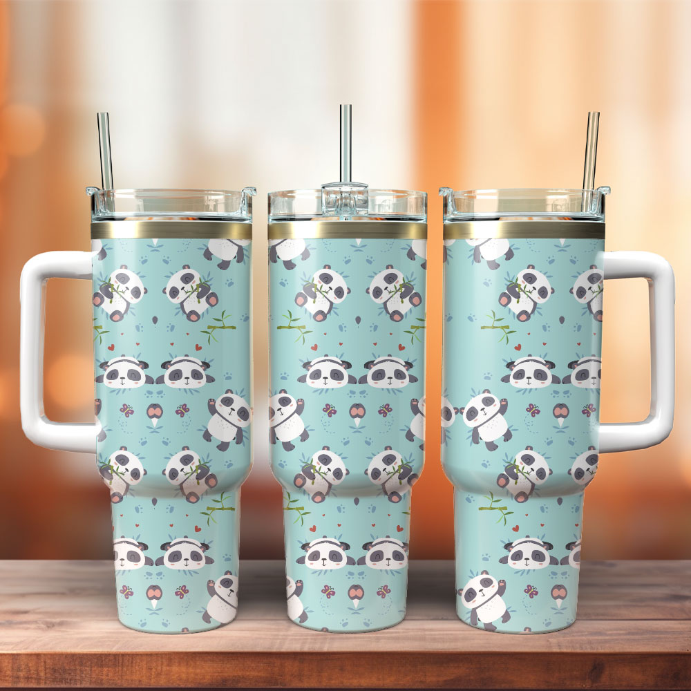 Lovely Pandas Artwork Custom Stanley Quencher 40Oz Stainless Steel Tumbler With Handle