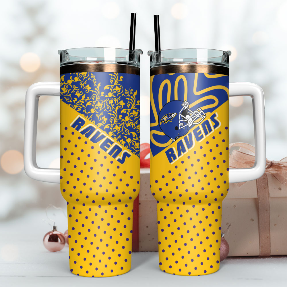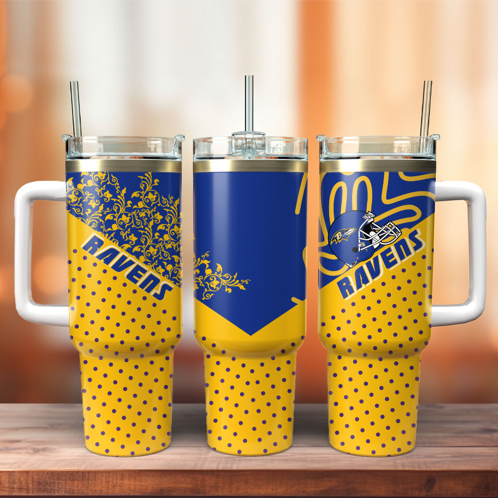 Baltimore Ravens Football Nfl Custom Stanley Quencher 40Oz Stainless Steel Tumbler With Handle