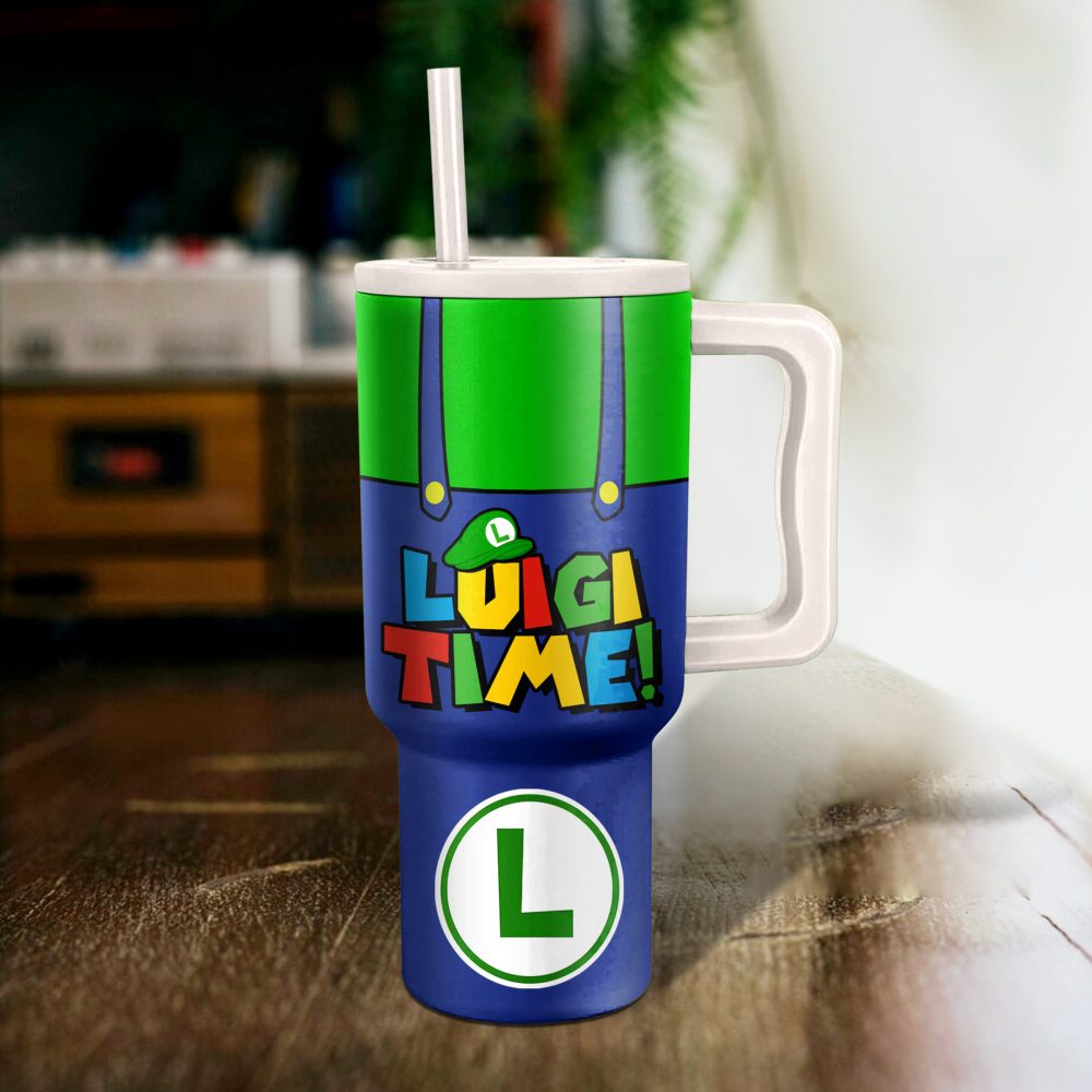 Luigi Super Mario Custom Stanley Quencher 40Oz Stainless Steel Tumbler With Handle