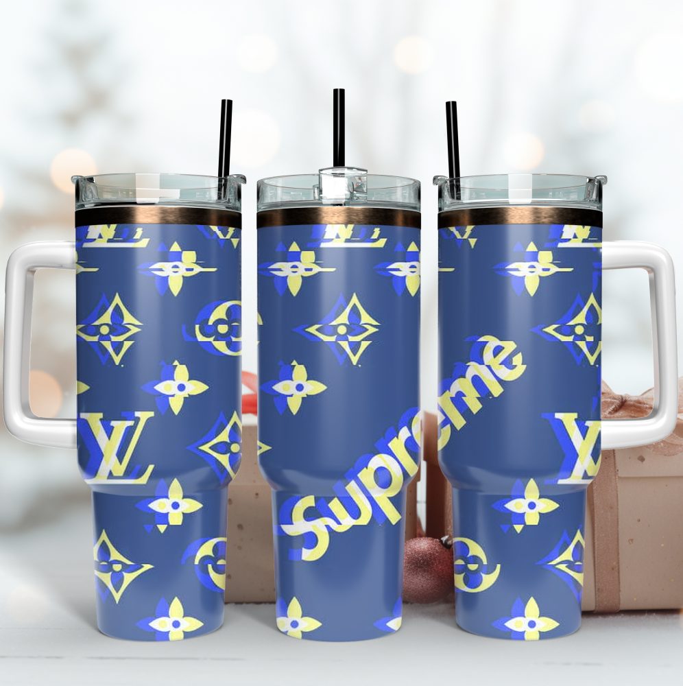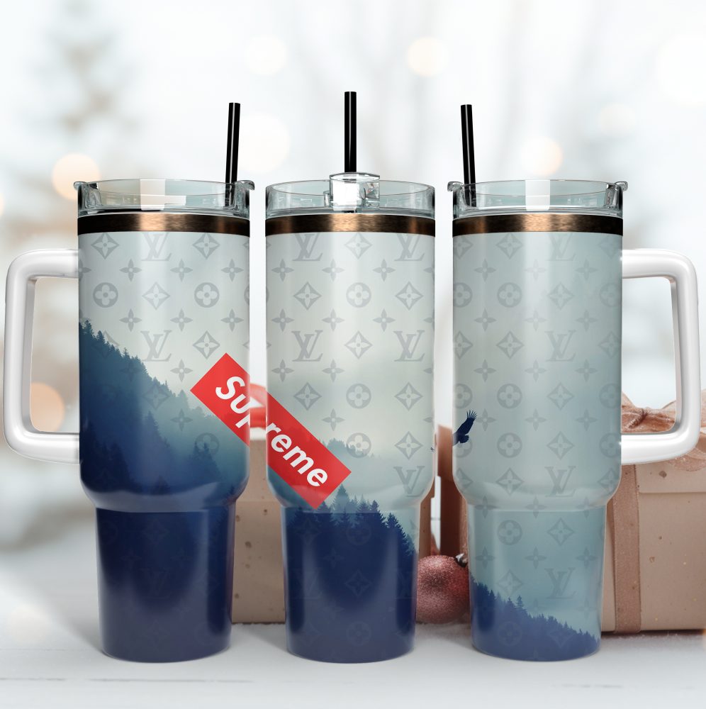 Lv X Supreme Logo Custom Stanley Quencher 40Oz Stainless Steel Tumbler With Handle