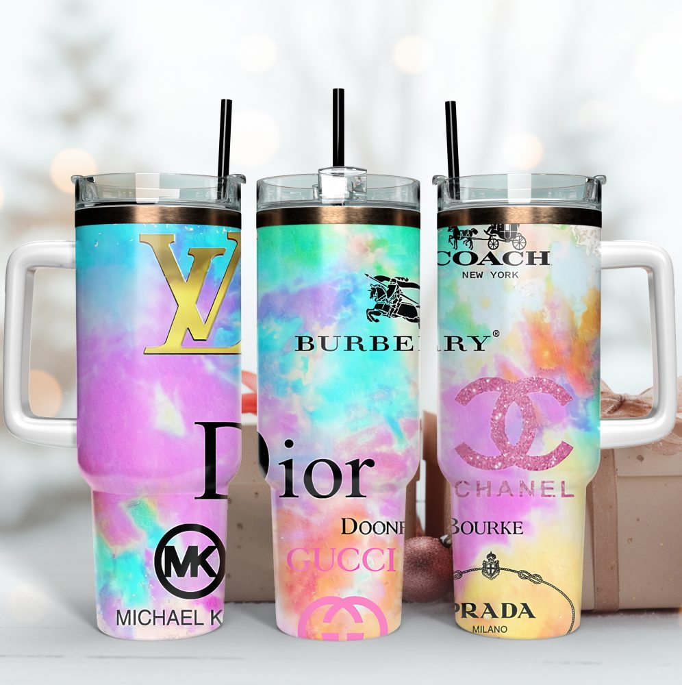 Lv Logo Chic Lady Tag Custom Stanley Quencher 40Oz Stainless Steel Tumbler With Handle