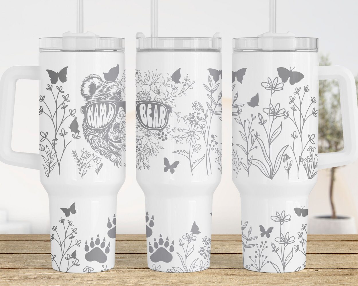 Mama Bear Wildflowers Custom Stanley Quencher 40Oz Stainless Steel Tumbler With Handle