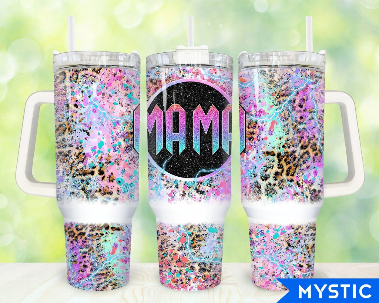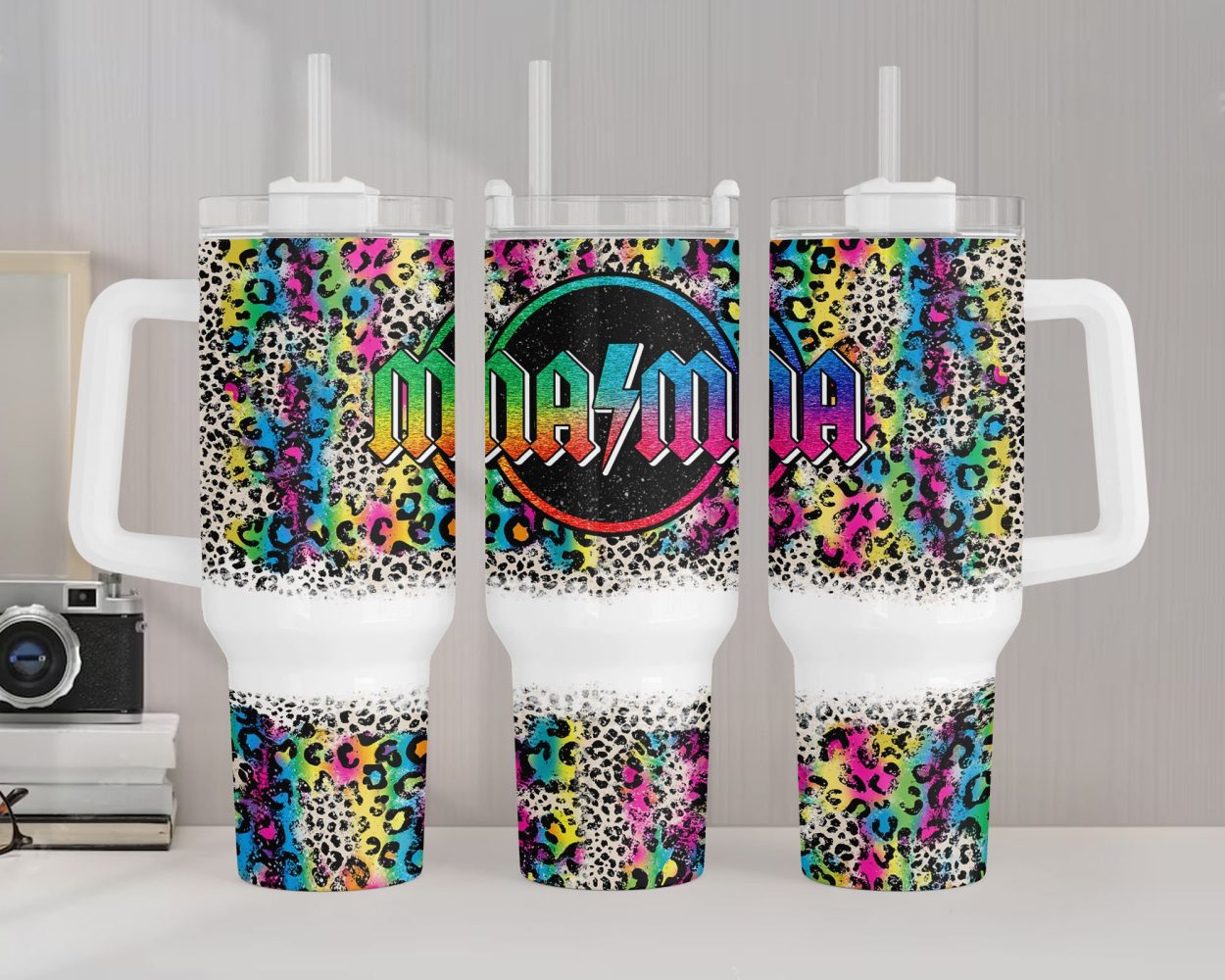Mama Colorful Leopard Print Custom Stanley Quencher 40Oz Stainless Steel Tumbler With Handle