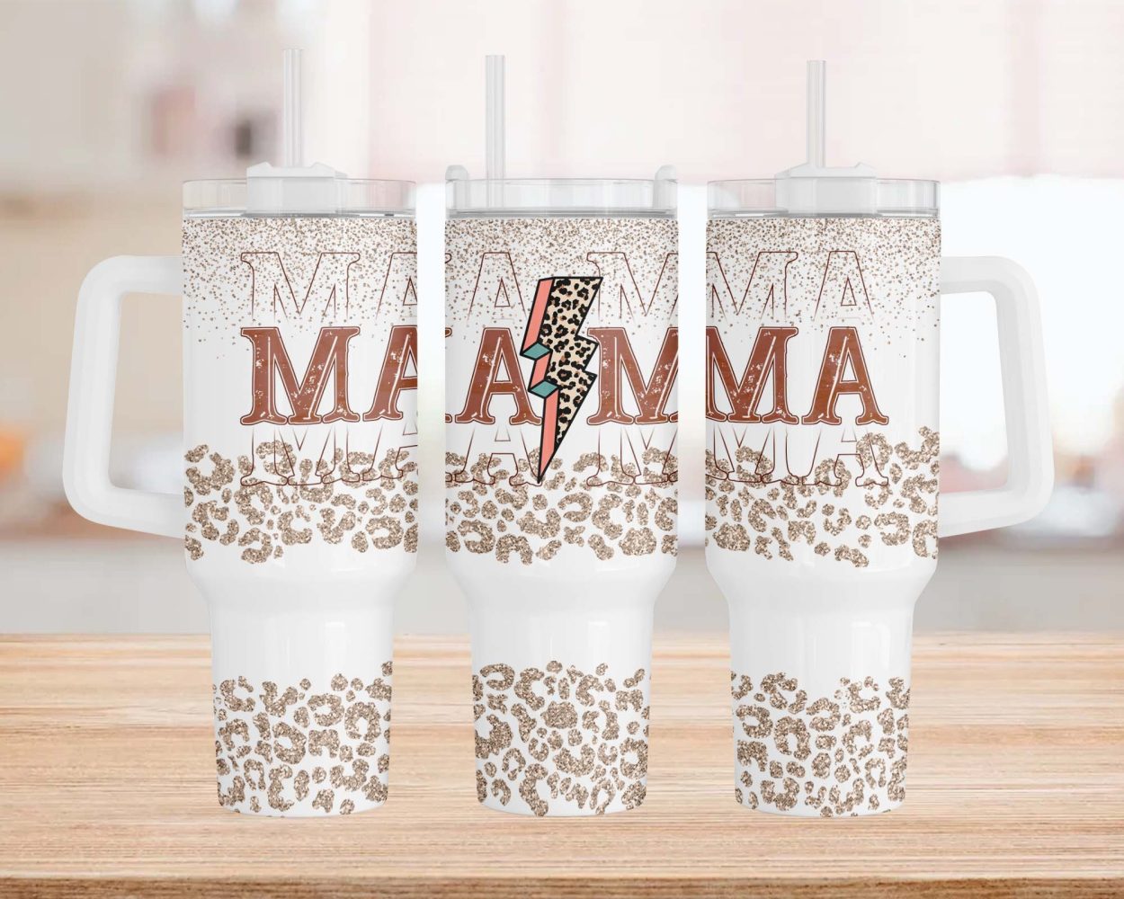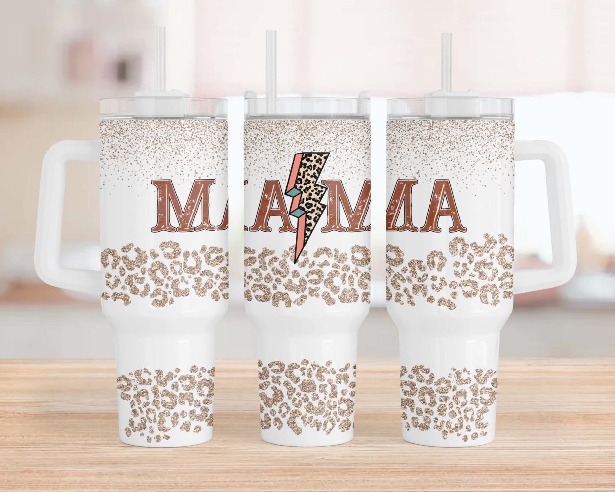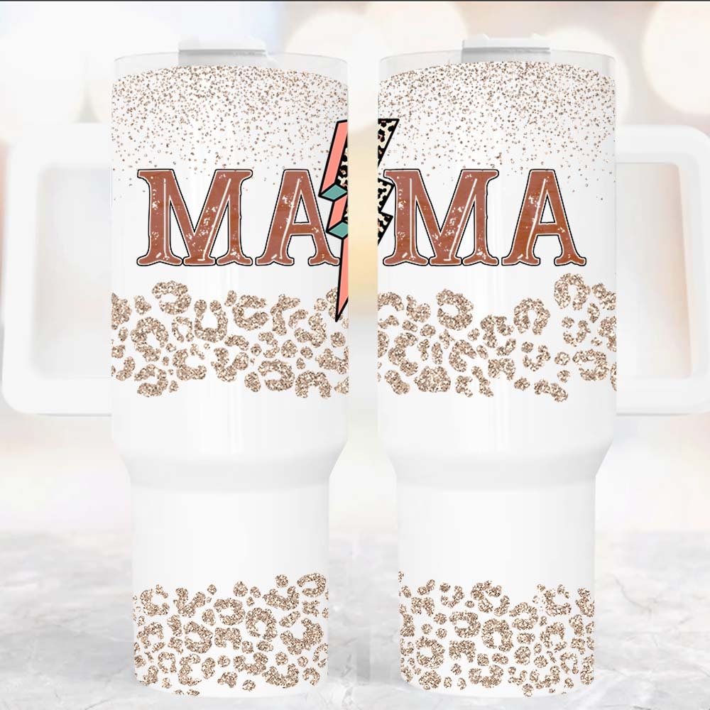 Mama Glitter Leopard Print Custom Stanley Quencher 40Oz Stainless Steel Tumbler With Handle