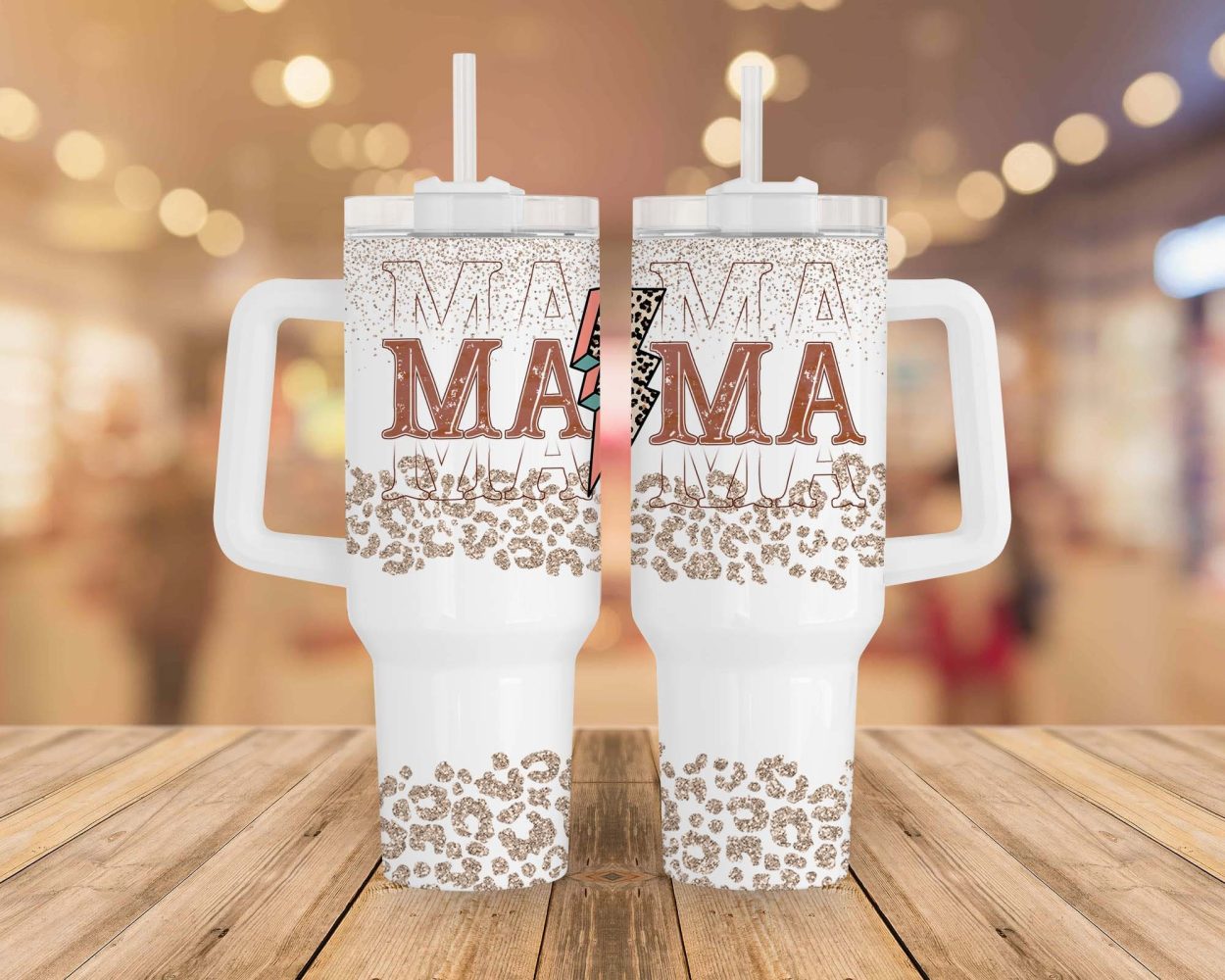 Mama Leopard Print Custom Stanley Quencher 40Oz Stainless Steel