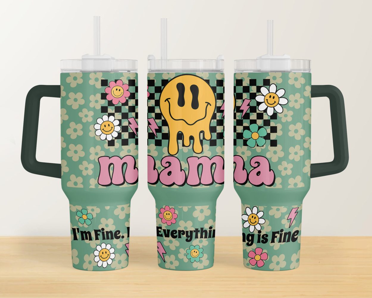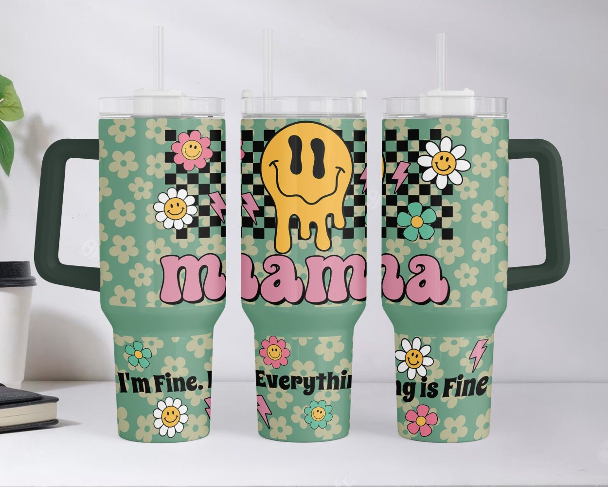 Mama Retro Smiley Face Custom Stanley Quencher 40Oz Stainless Steel Tumbler With Handle