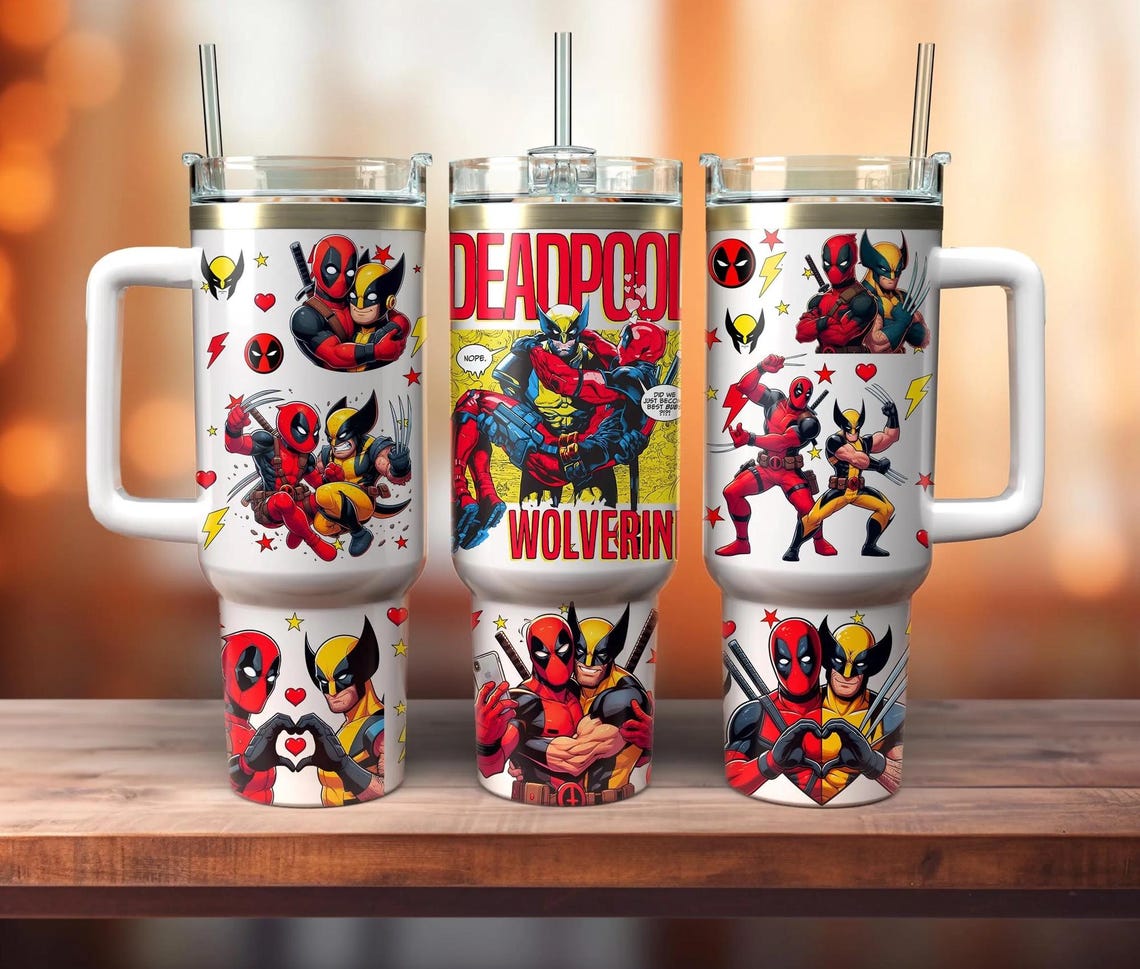 Marvel Deadpool And Wolverine 40Oz Tumbler Mug With Straw Fun Superhero Design For Fans