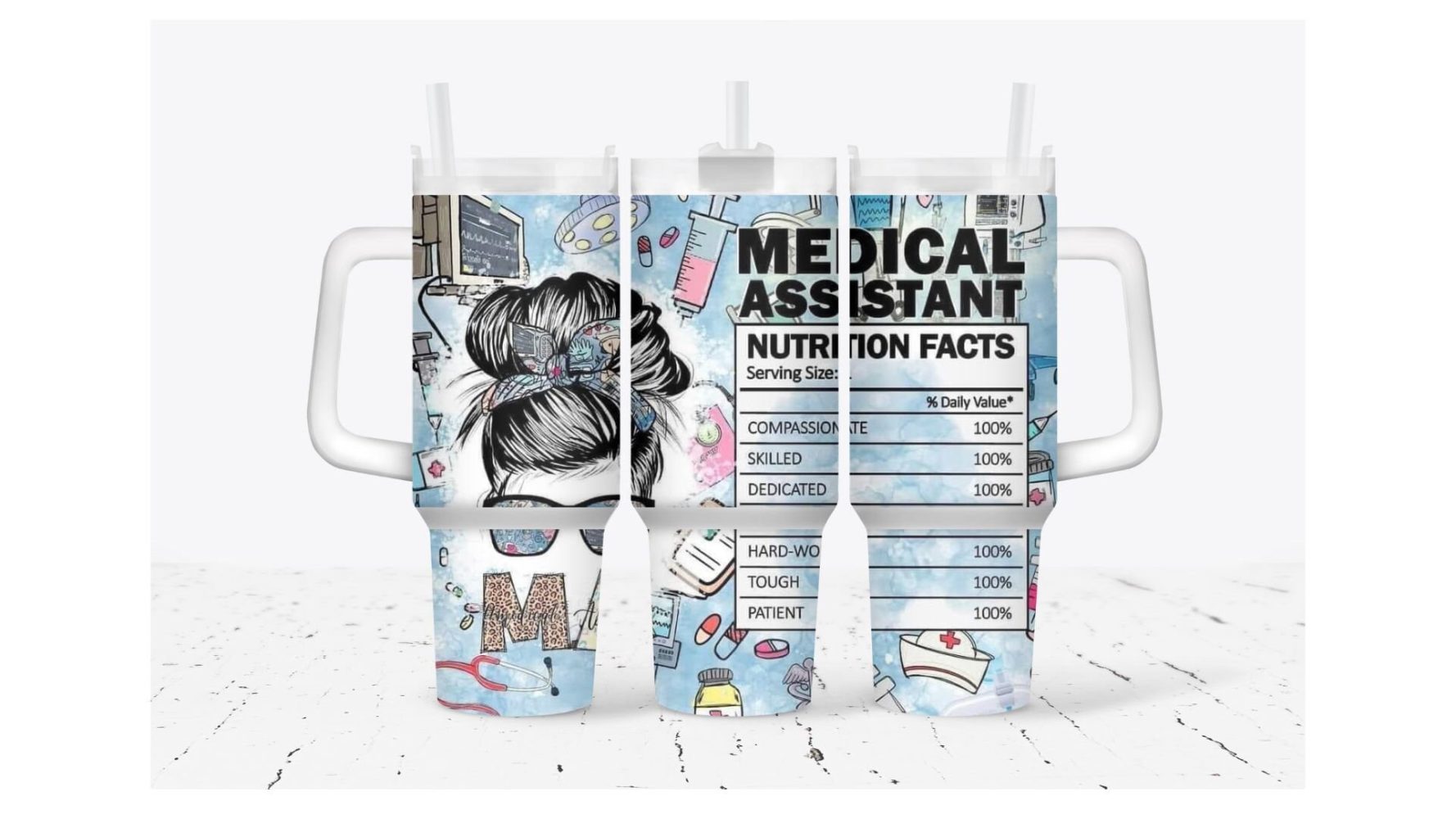 Medical Equipments Pattern Artwork Custom Stanley Quencher 40Oz Stainless Steel Tumbler With Handle