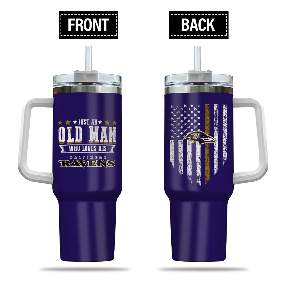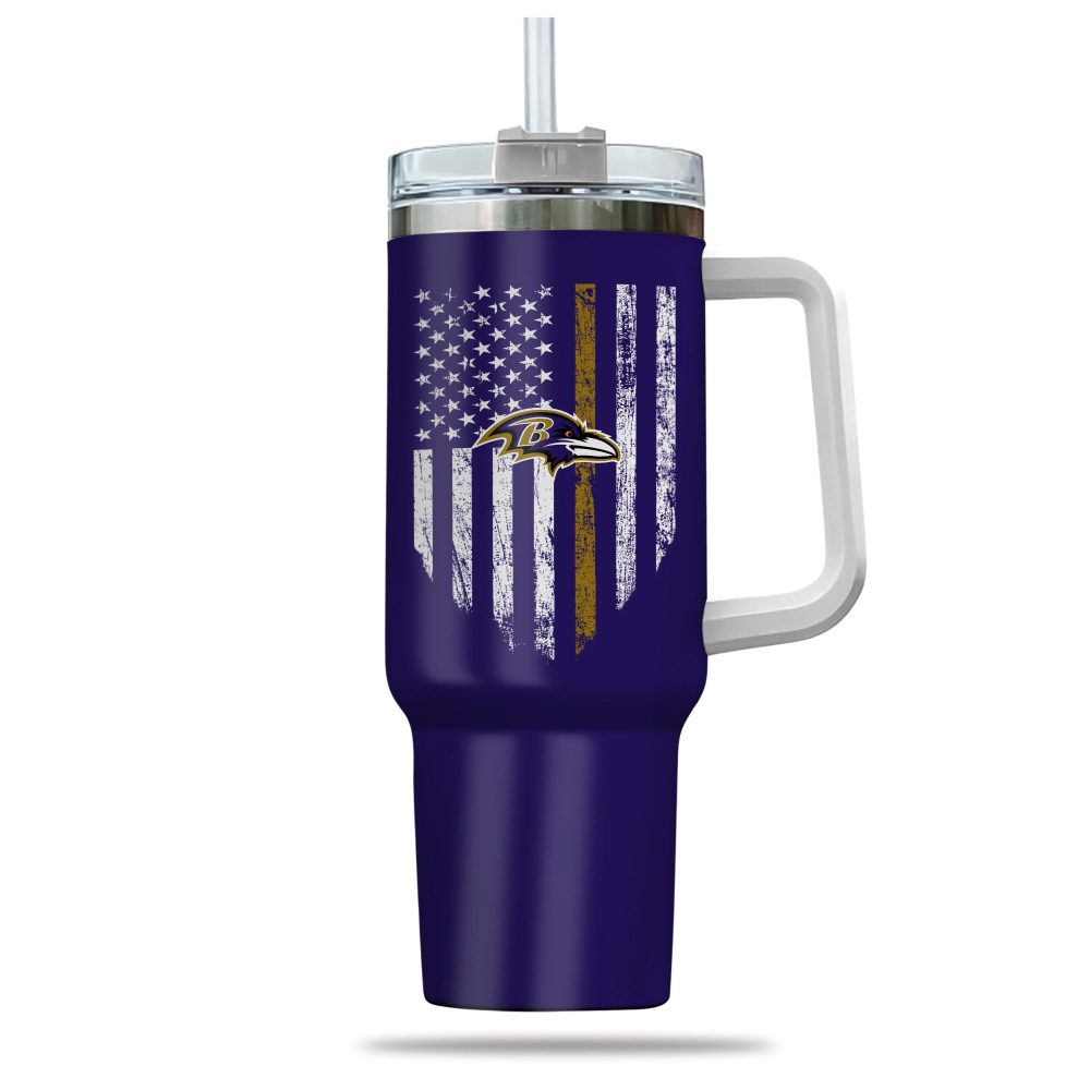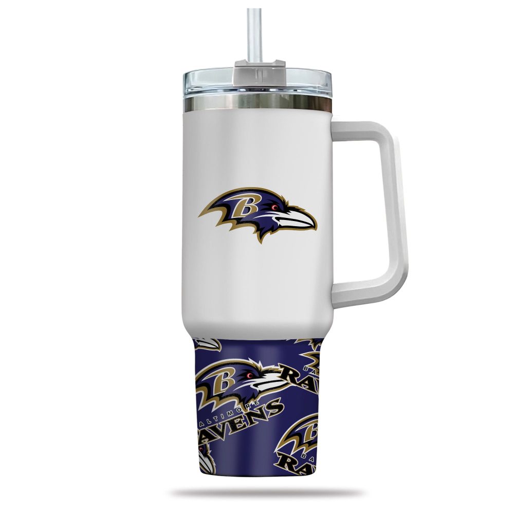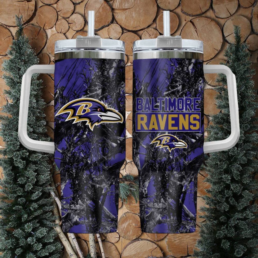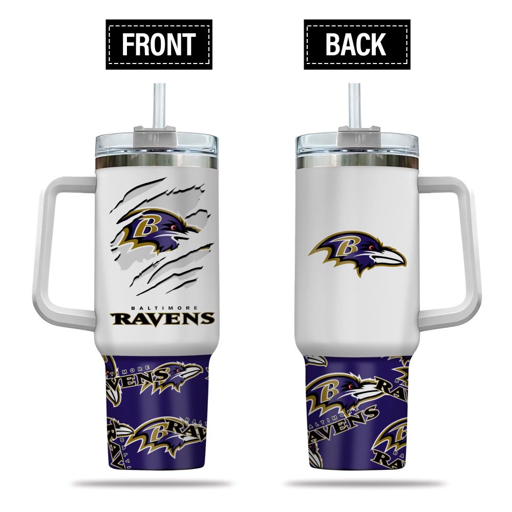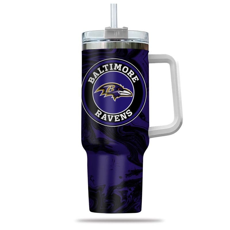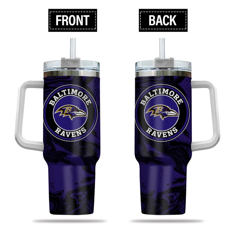 Baltimore Ravens Nfl Custom Stanley Quencher 40Oz Stainless Steel Tumbler With Handle
