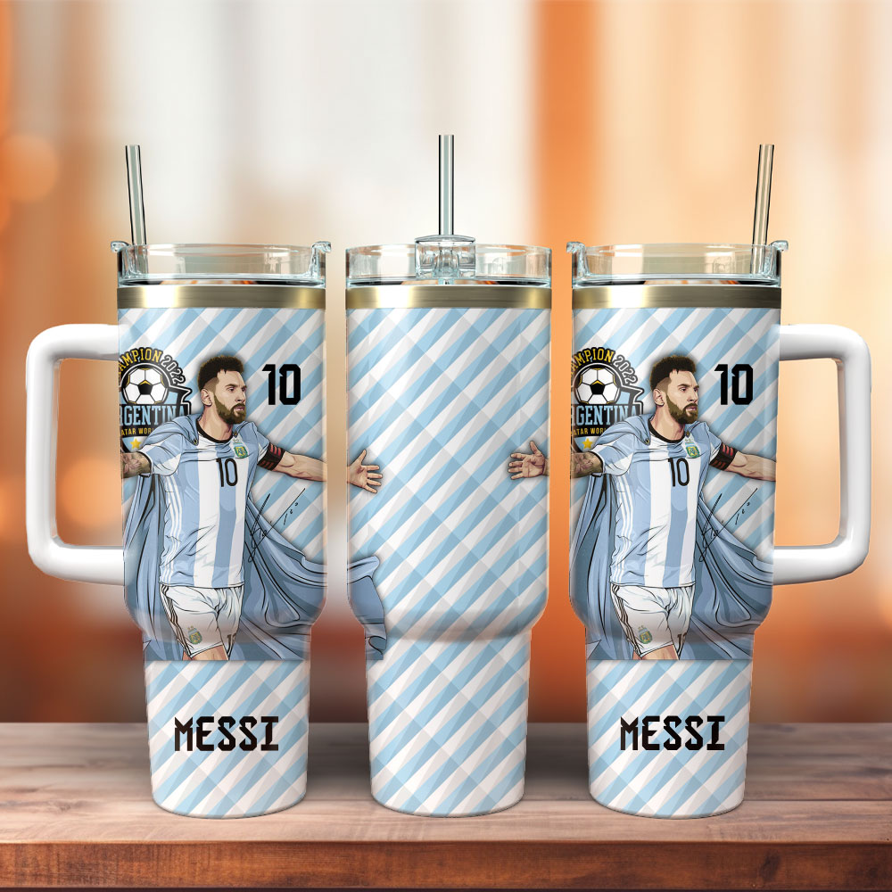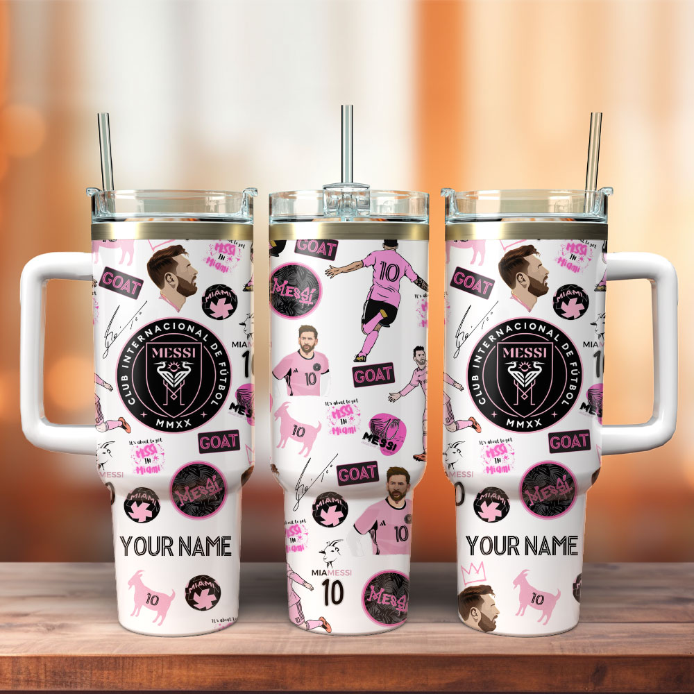Messi Soccer Custom Stanley Quencher 40Oz Stainless Steel Tumbler With Handle
