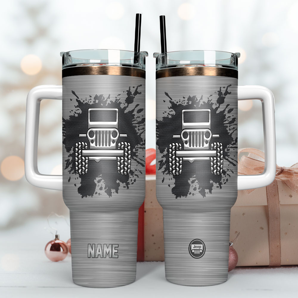 Metal Jeep Custom Stanley Quencher 40Oz Stainless Steel Tumbler With Handle