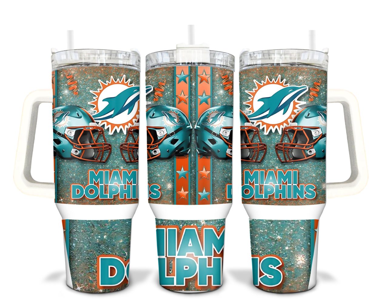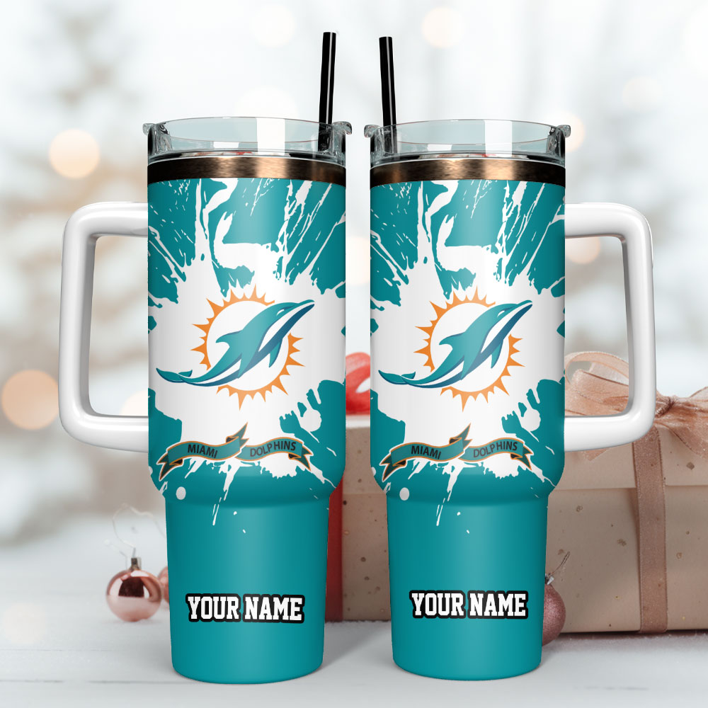 Miami Dolphins Football Nfl Custom Stanley Quencher 40Oz Stainless Steel Tumbler With Handle