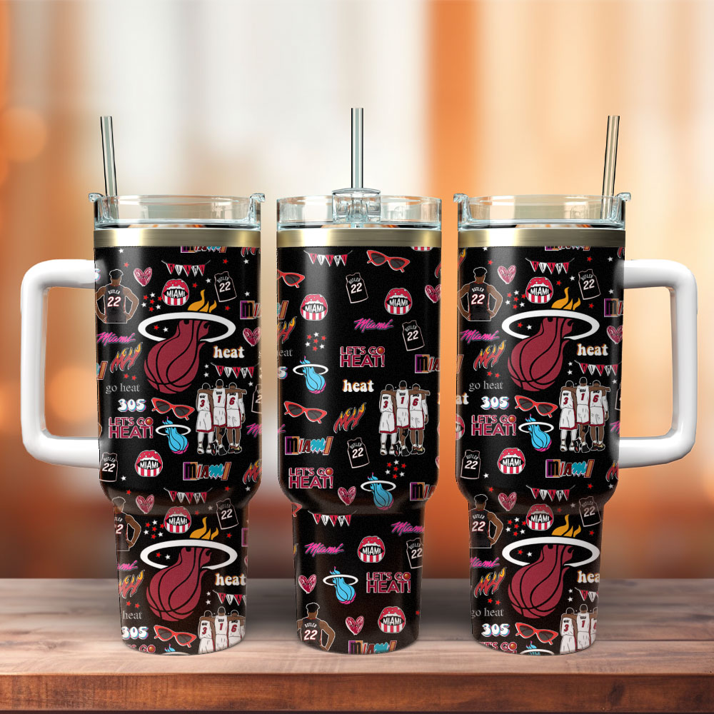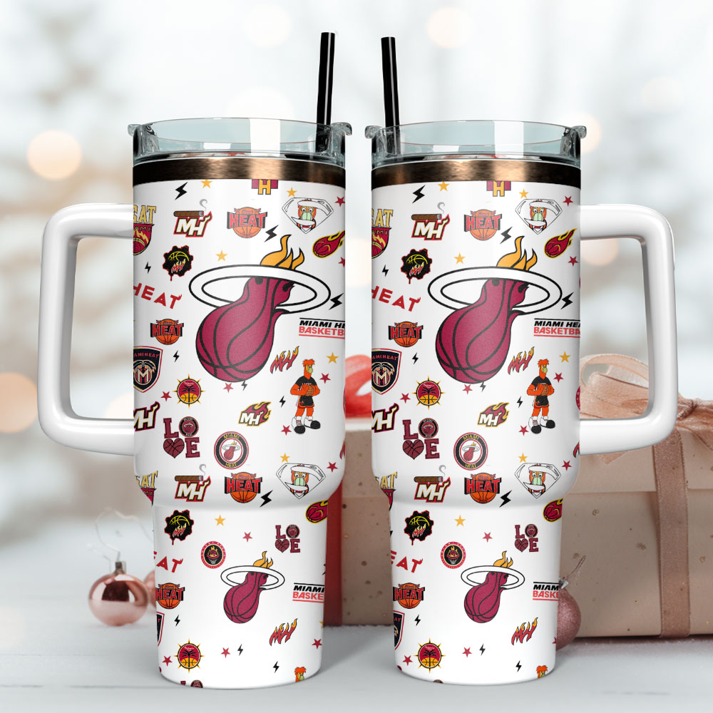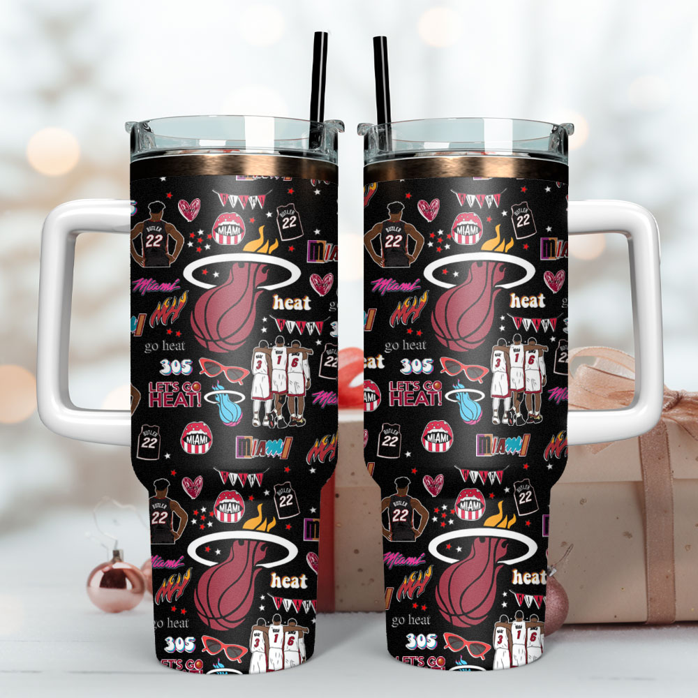 Miami Heat Basketball Nba Sport Custom Stanley Quencher 40Oz Stainless Steel Tumbler