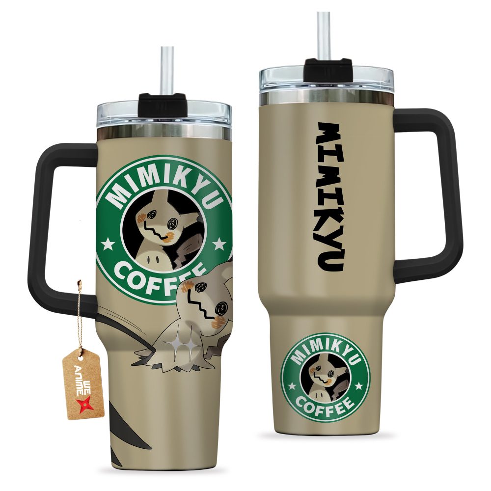 Mimikyu Coffee Pokemon Anime Custom Stanley Quencher 40Oz Stainless Steel Tumbler With Handle