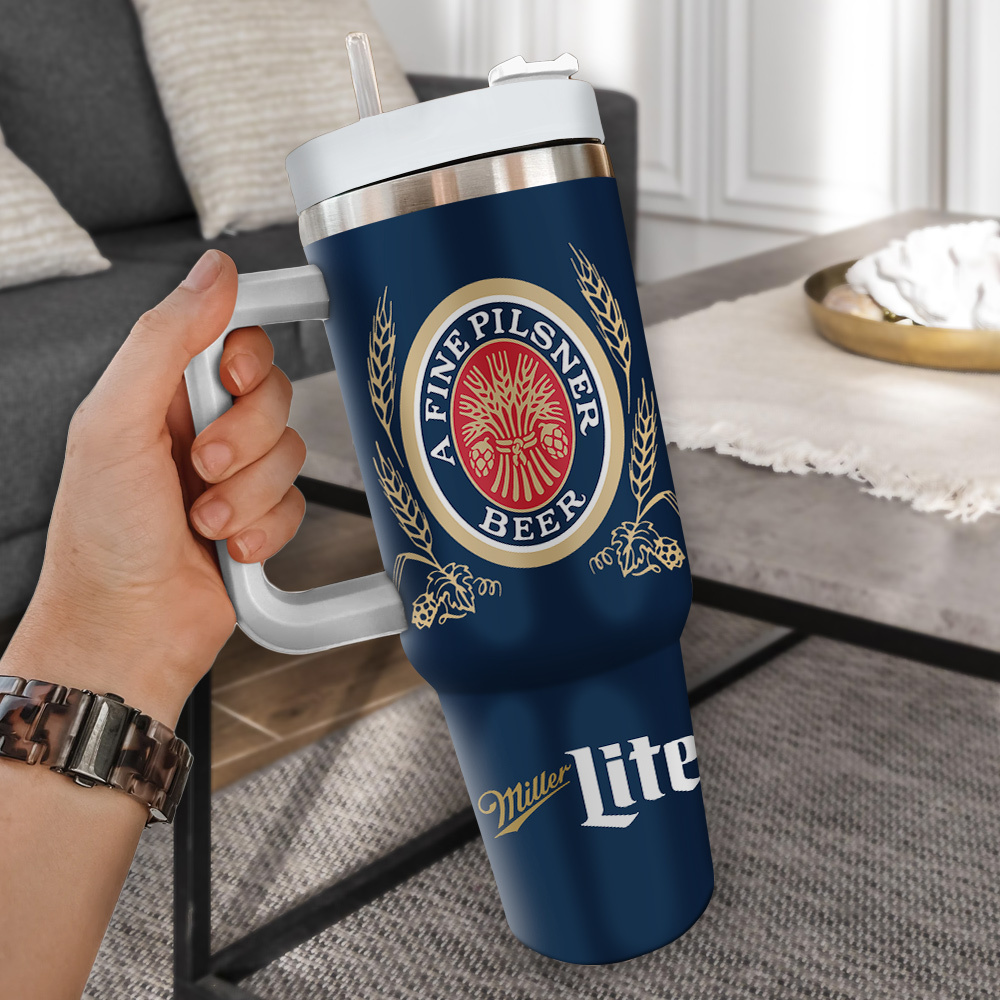 Miller Lite Drinks Custom Stanley Quencher 40Oz Stainless Steel Tumbler