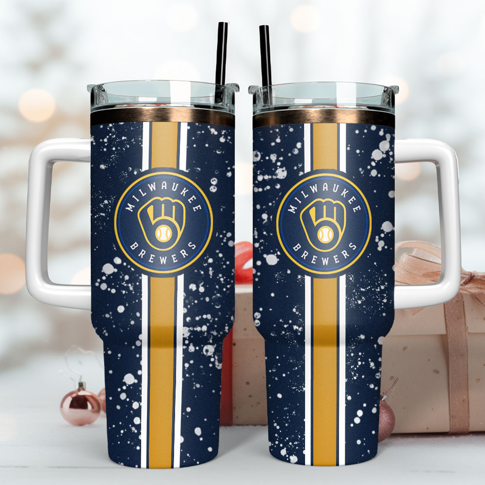 Milwaukee Brewers 40Oz Tumbler With Handle Insulated Drinkware For Fans