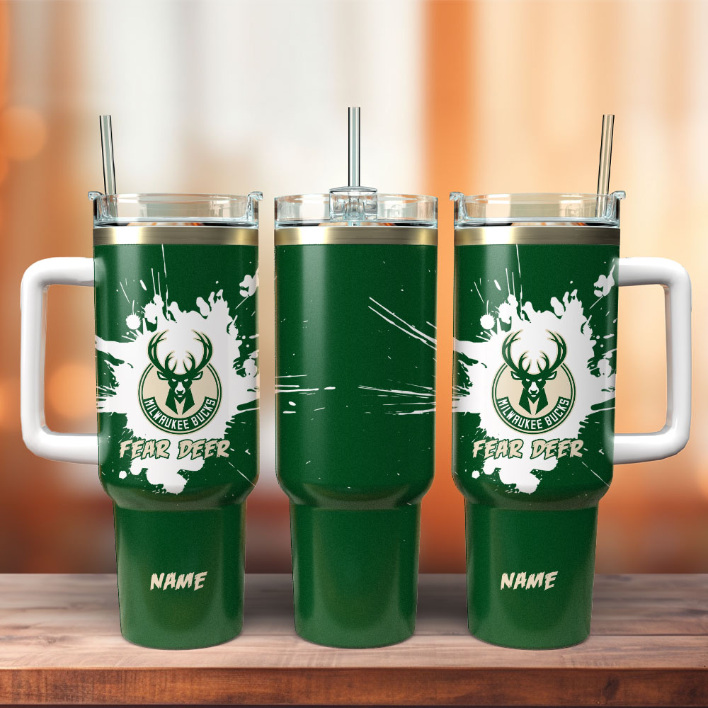 Milwaukee Bucks Nba Custom Stanley Quencher 40Oz Stainless Steel Tumbler