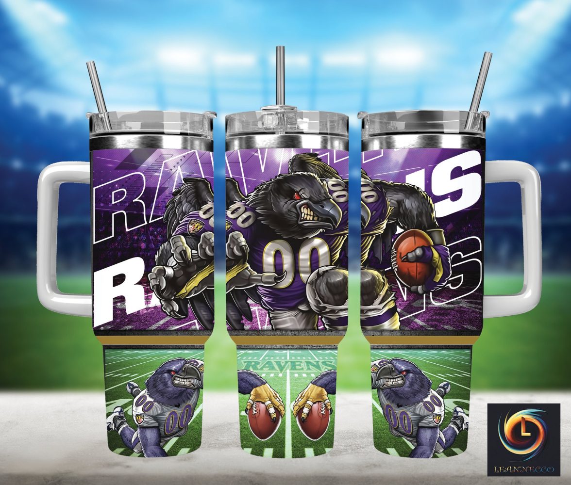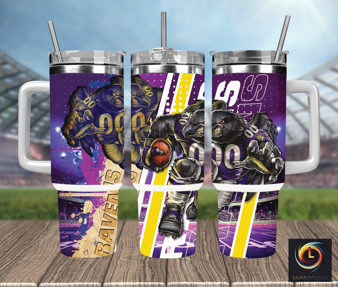 Baltimore Ravens Nfl Mascot Custom Stanley Quencher 40Oz Stainless Steel Tumbler With Handle