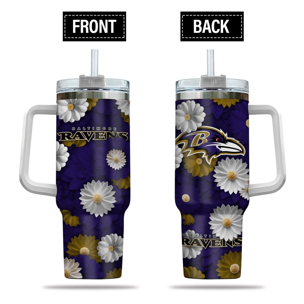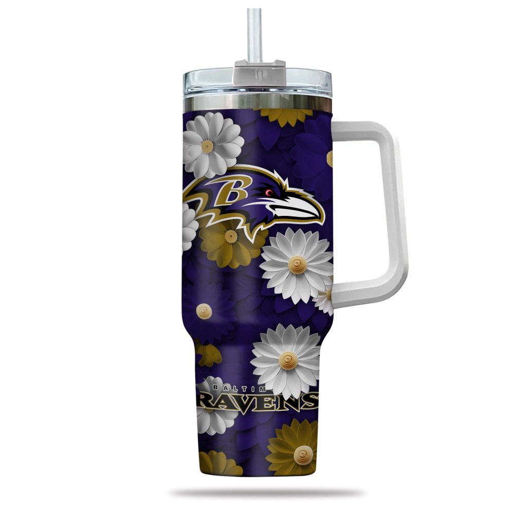 Baltimore Ravens Nfl Flowers Custom Stanley Quencher 40Oz Stainless Steel Tumbler With Handle