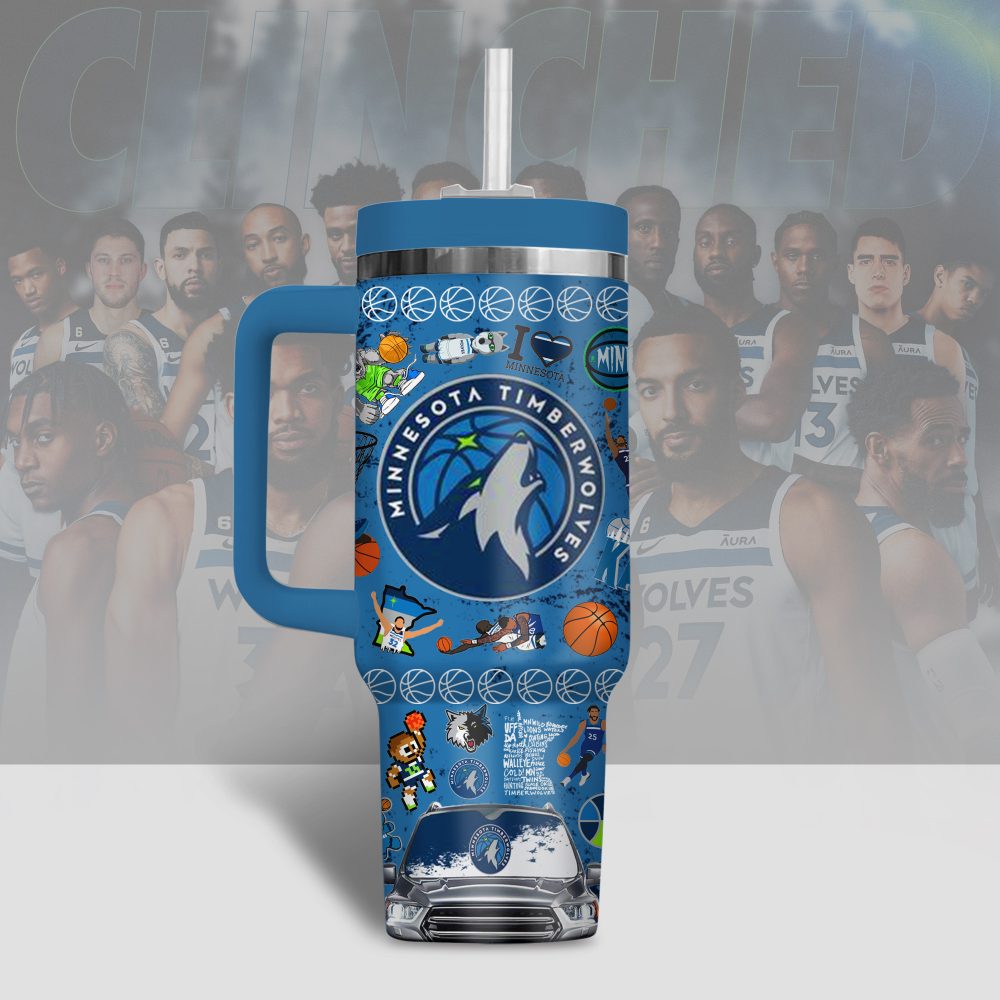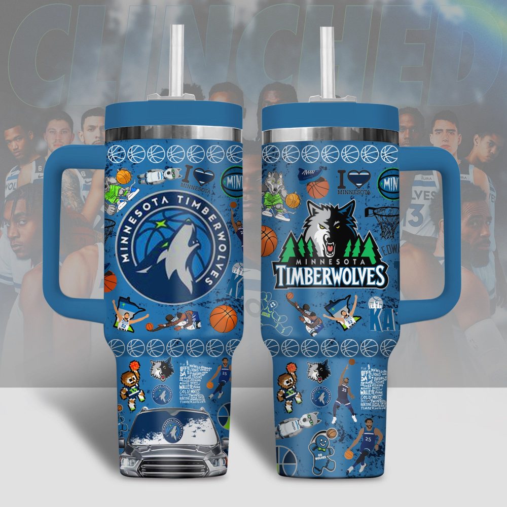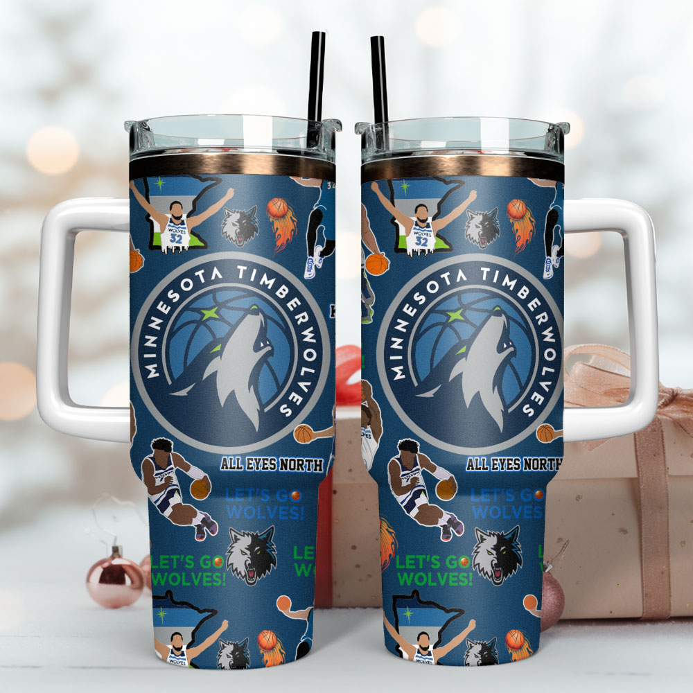 Minnesota Timberwolves Basketball Team Nba Custom Stanley Quencher 40Oz Stainless Steel Tumbler With Handle