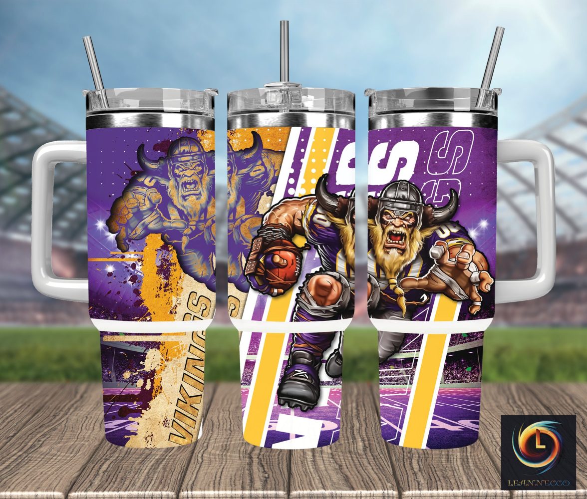 Minnesota Vikings Nfl Mascot Custom Stanley Quencher 40Oz Stainless Steel Tumbler With Handle