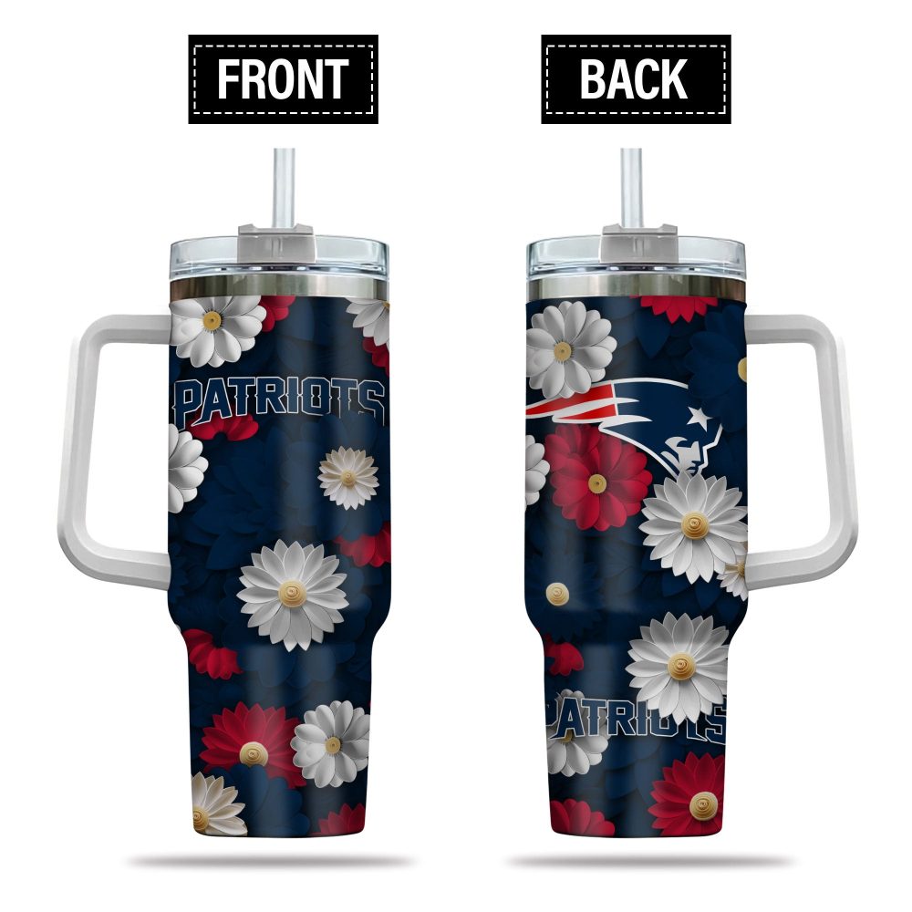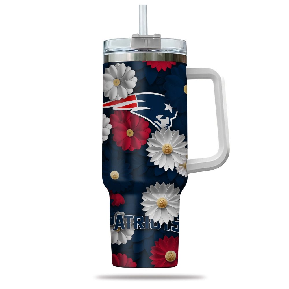 New England Patriots Nfl Flowers Custom Stanley Quencher 40Oz Stainless Steel Tumbler With Handle