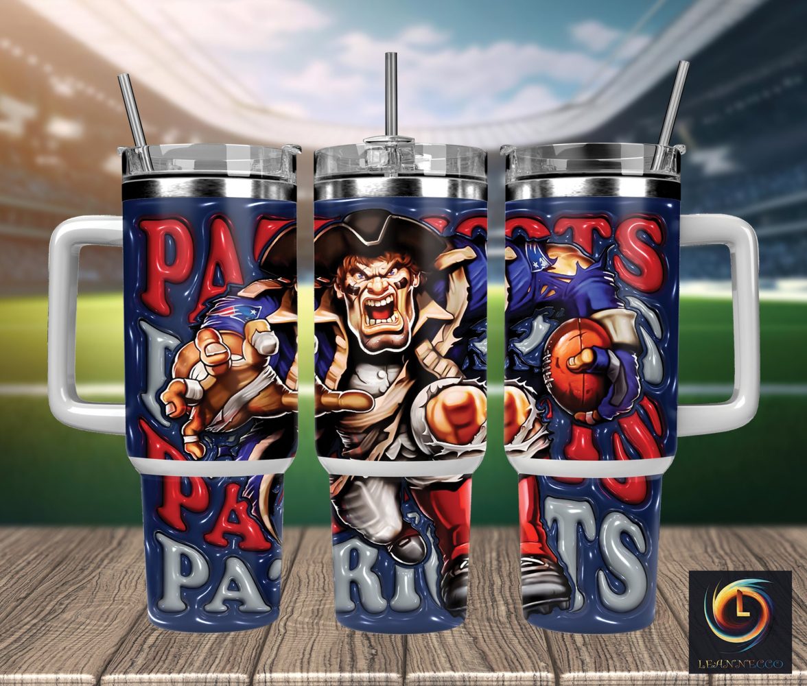New England Patriots Nfl Mascot Custom Stanley Quencher 40Oz Stainless Steel Tumbler With Handle
