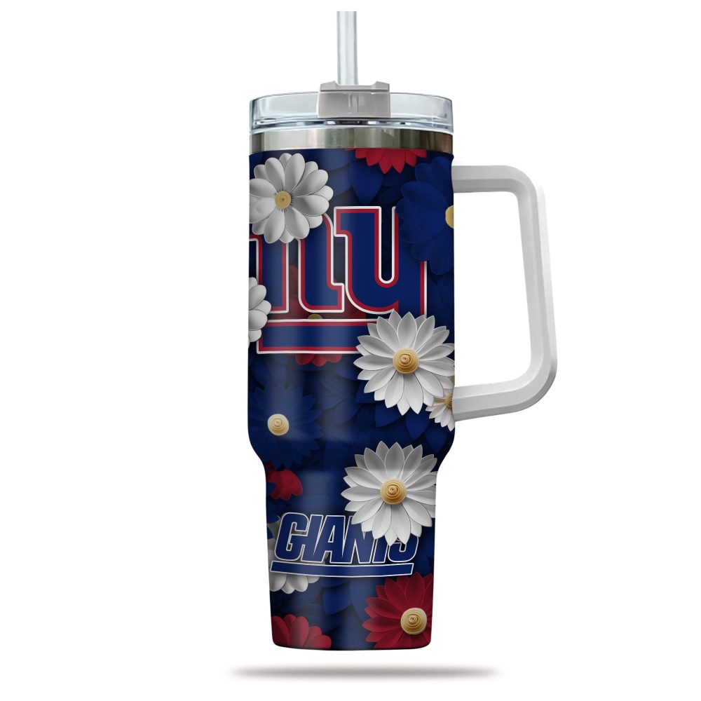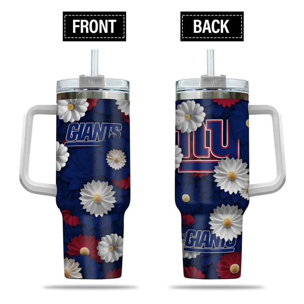 New York Giants Nfl Flowers Custom Stanley Quencher 40Oz Stainless Steel Tumbler With Handle