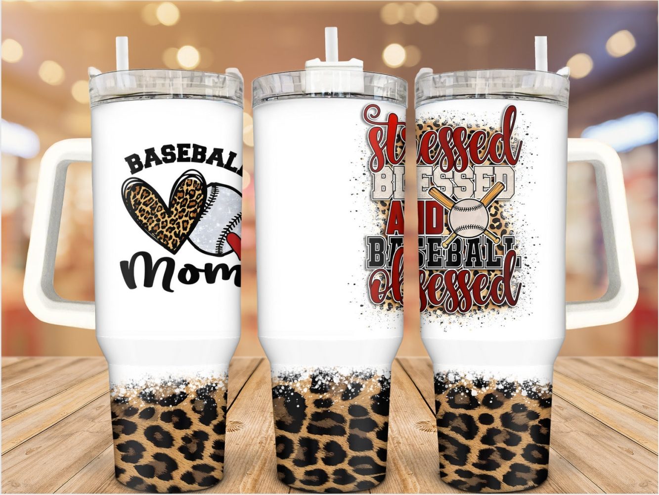 Baseball Leopard Pattern Custom Stanley Quencher 40Oz Stainless Steel Tumbler With Handle
