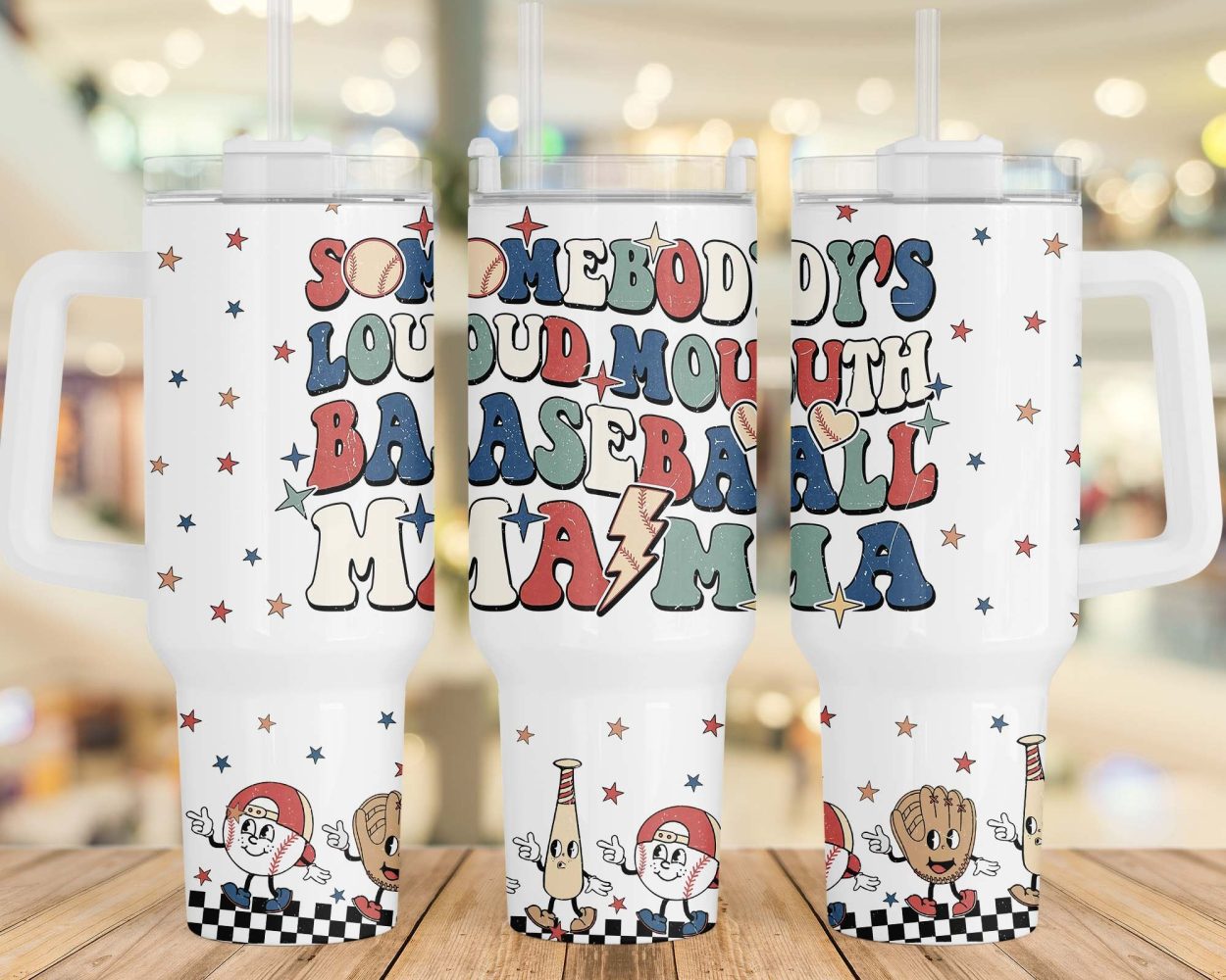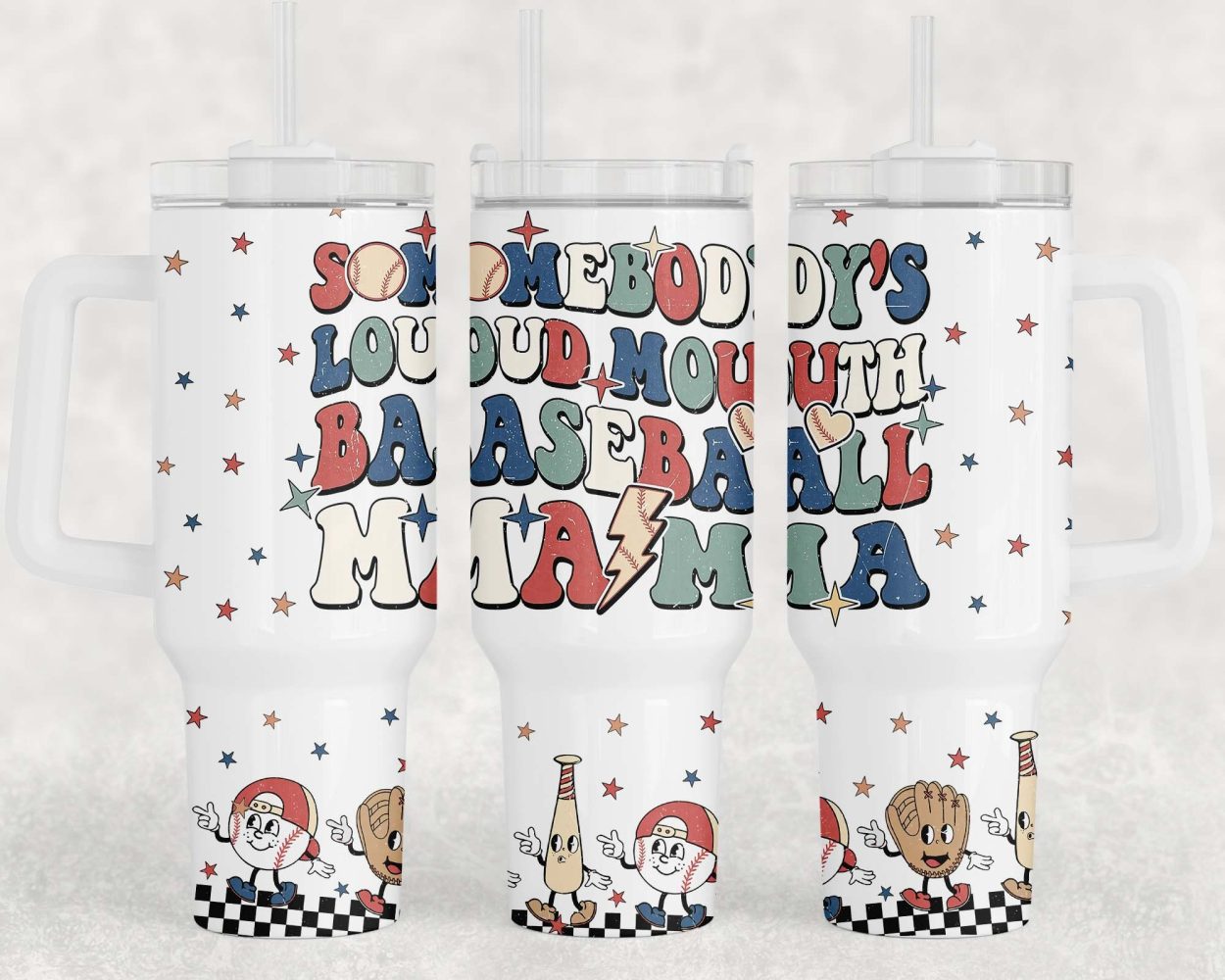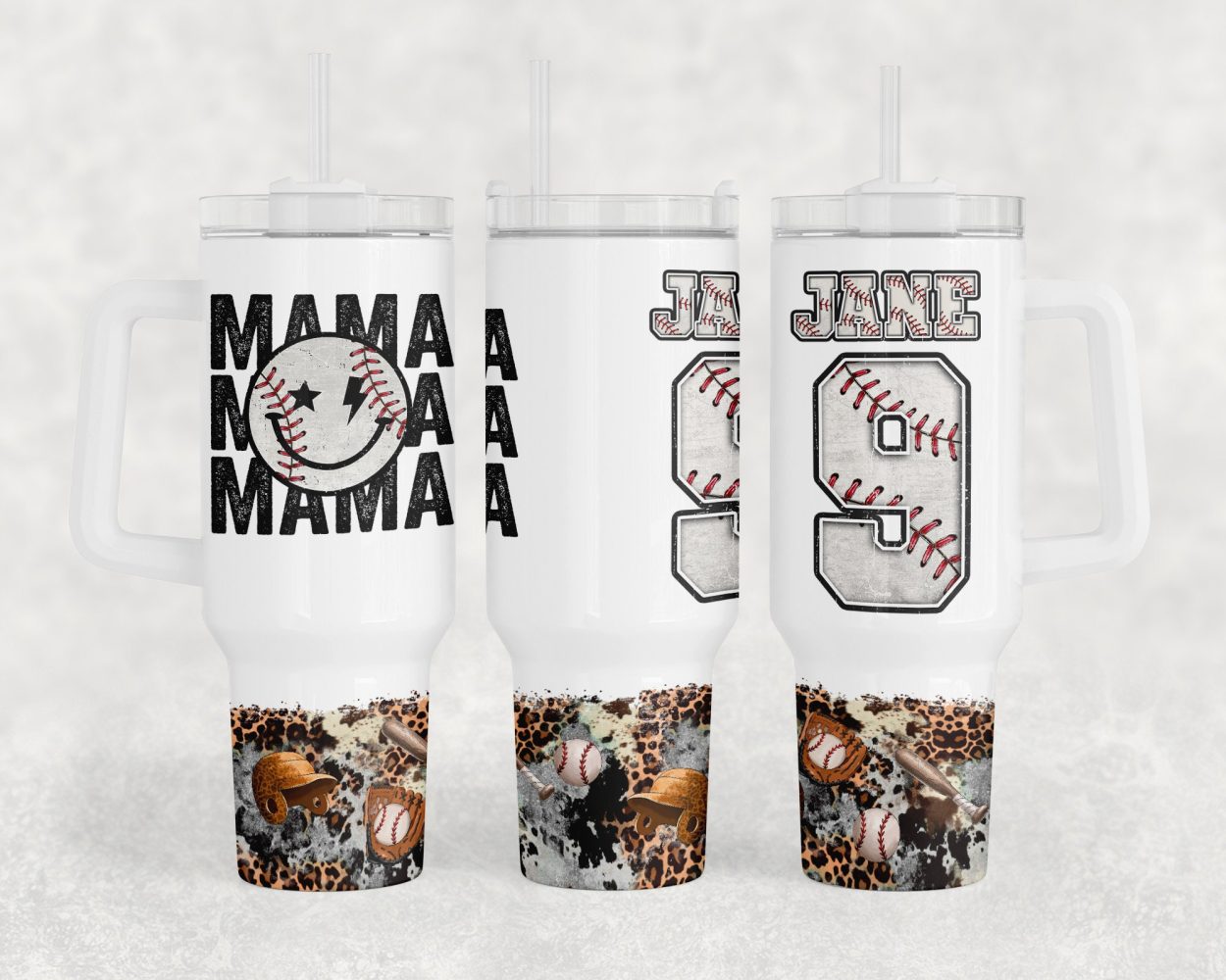Baseball Mama Custom Stanley Quencher 40Oz Stainless Steel Tumbler With Handle
