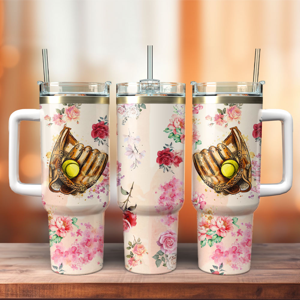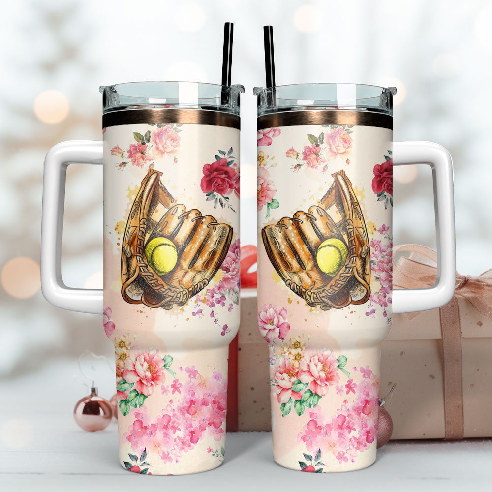 Baseball Glove And Ball Artwork Custom Stanley Quencher 40Oz Stainless Steel Tumbler With Handle