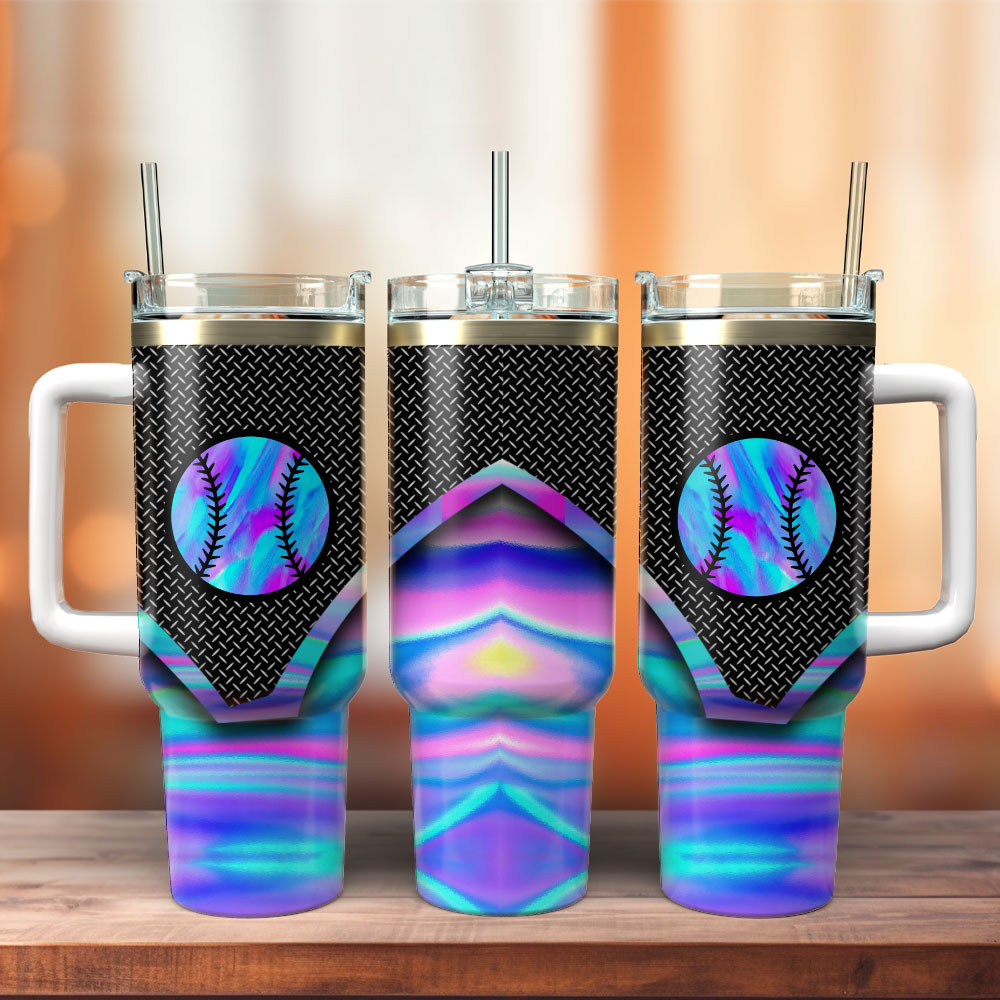 Baseball Artwork Custom Stanley Quencher 40Oz Stainless Steel Tumbler With Handle