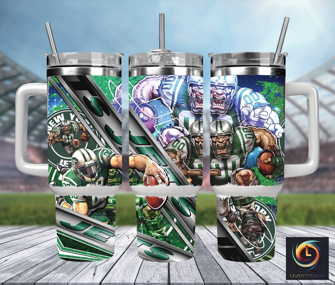 New York Jets Nfl Mascot Custom Stanley Quencher 40Oz Stainless Steel Tumbler With Handle