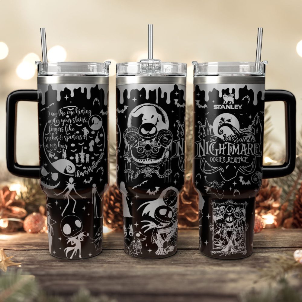 Nightmare Before Christmas Tumbler 40Oz Stainless Steel Travel Mug With Handle And Straw