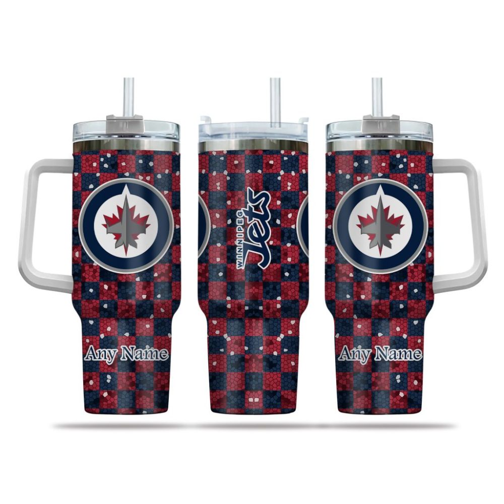 Nhl Winnipeg Jets Stained Glass Effect Custom Stanley Quencher 40Oz Stainless Steel Tumbler With Handle