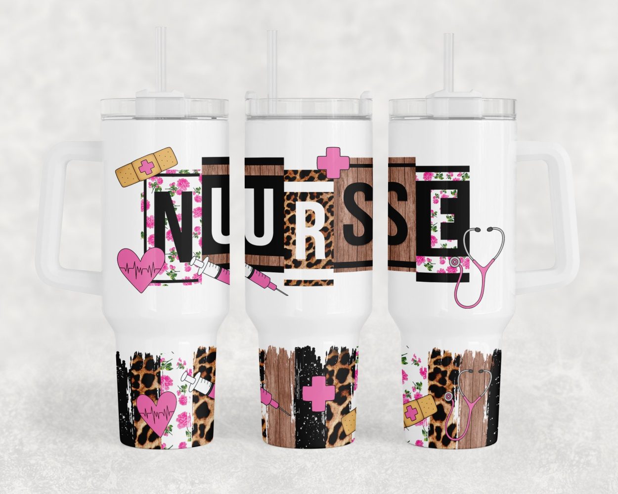 Nurse Life Leopard Print Custom Stanley Quencher 40Oz Stainless Steel Tumbler With Handle