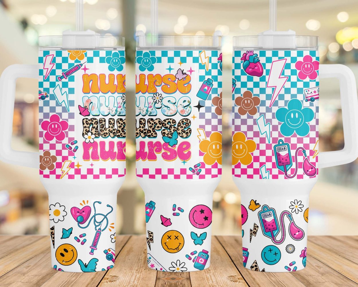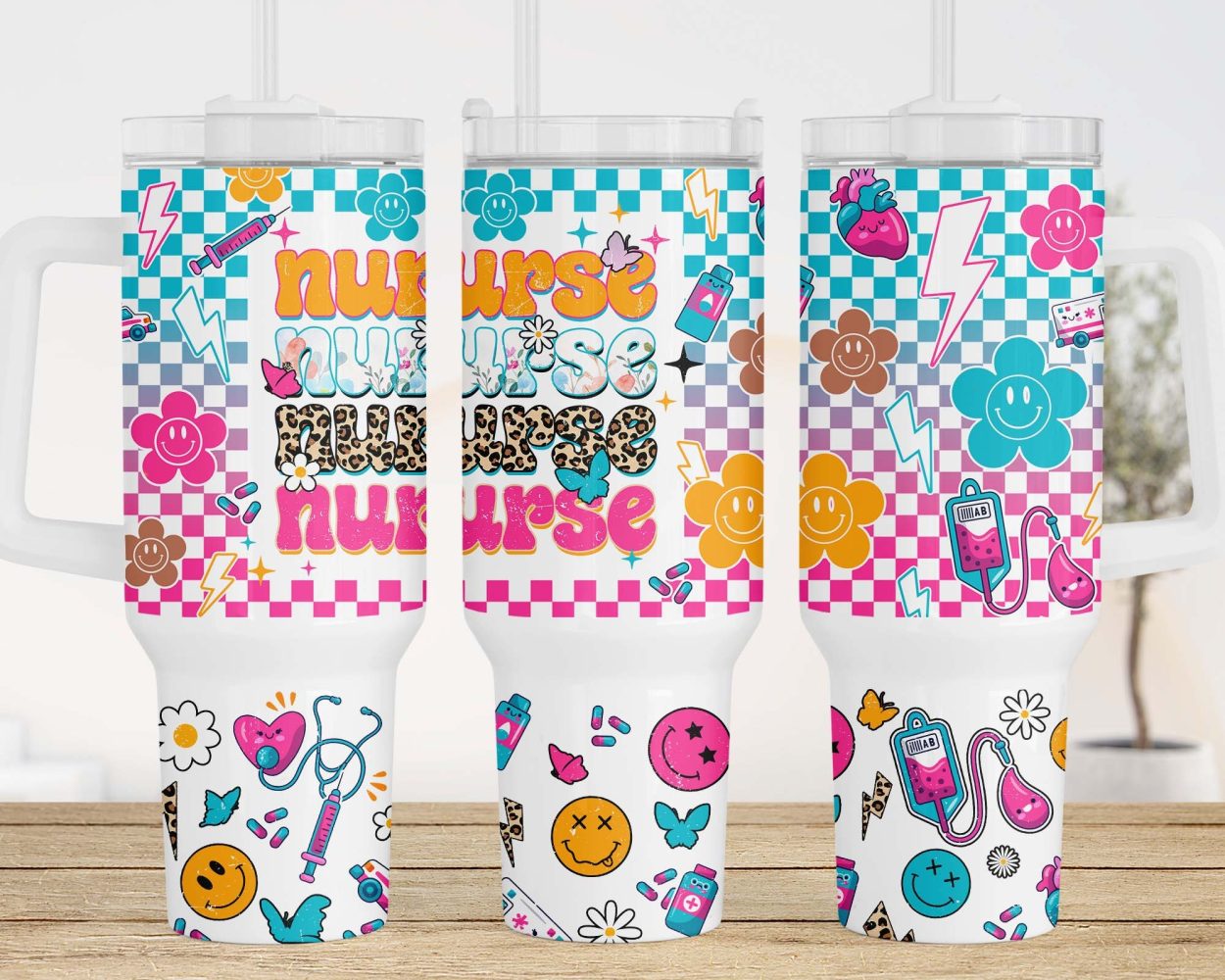Nurse Life Tumbler With Handle And Straw 40Oz Insulated Travel Mug Cute Medical Design