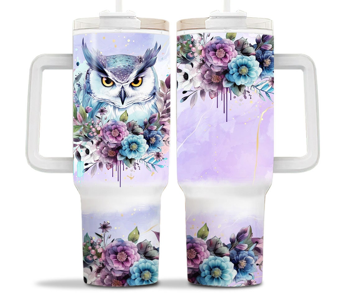 Owl Purple Floral Custom Stanley Quencher 40Oz Stainless Steel Tumbler With Handle