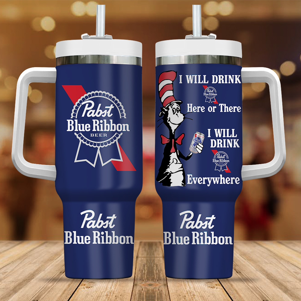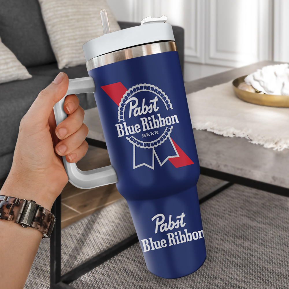 Pabst Blue Ribbon Drink Custom Stanley Quencher 40Oz Stainless Steel Tumbler With Handle