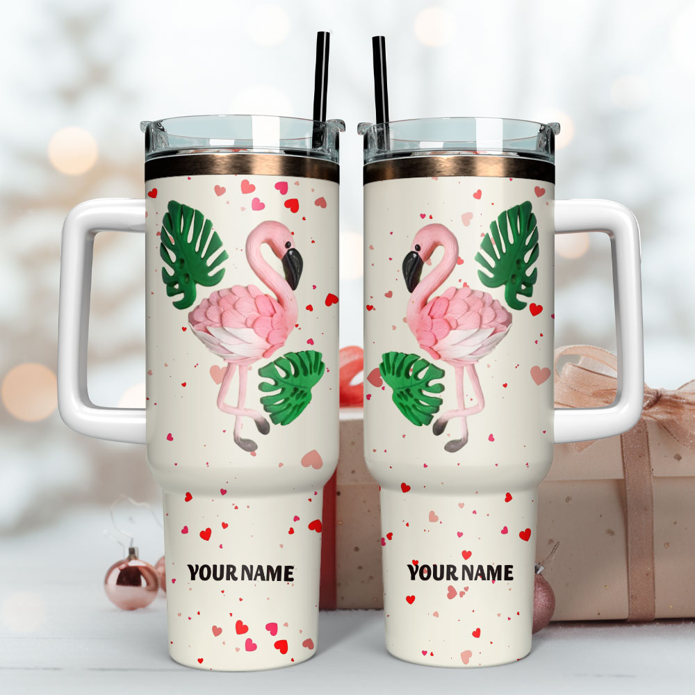 Pink Flamingo Custom Stanley Quencher 40Oz Stainless Steel Tumbler With Handle