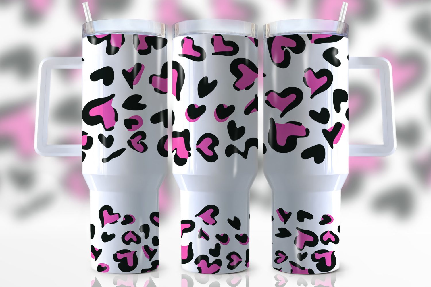 Pink Heart With Leopard Pattern Custom Stanley Quencher 40Oz Stainless Steel Tumbler With Handle