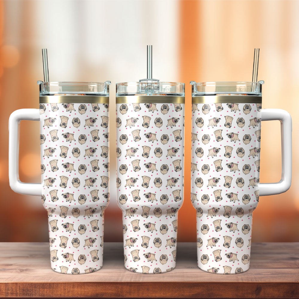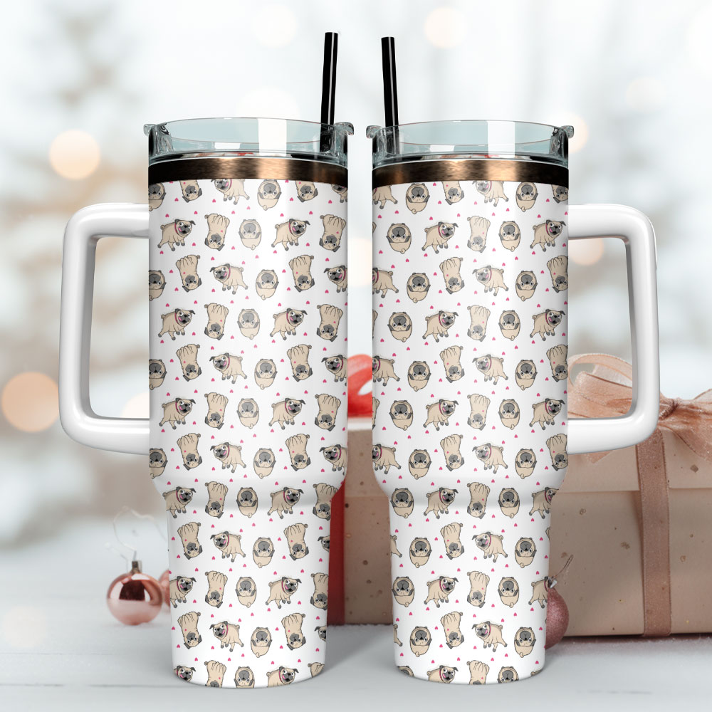 Pug Breed Pattern Animal Artwork Custom Stanley Quencher 40Oz Stainless Steel Tumbler With Handle